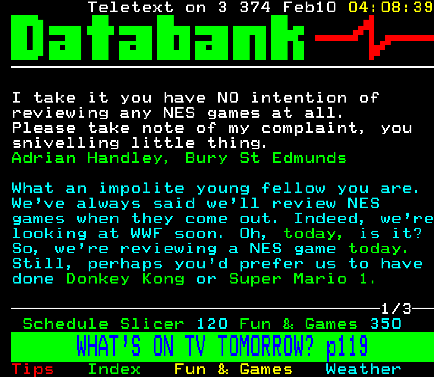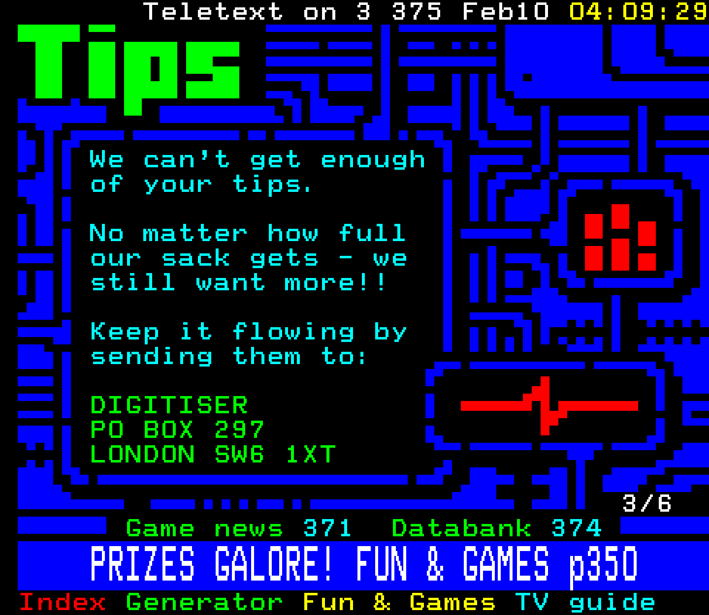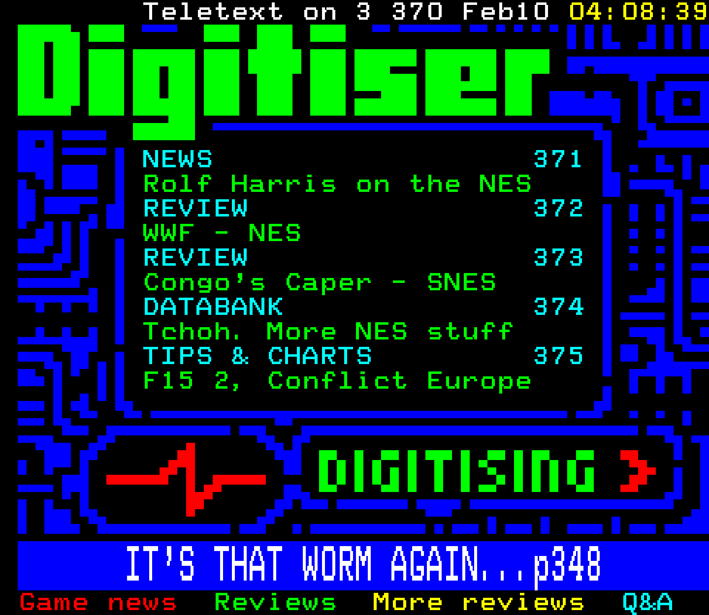 Do you have any full screenshot images of Digitiser that you'd like to see included in this archive? I'd just love to include them here - please email (superpage58@gmail.com) and the Digi community will be eternally grateful. Hey: even photos of your old TV showing the teletext page are good to be included!