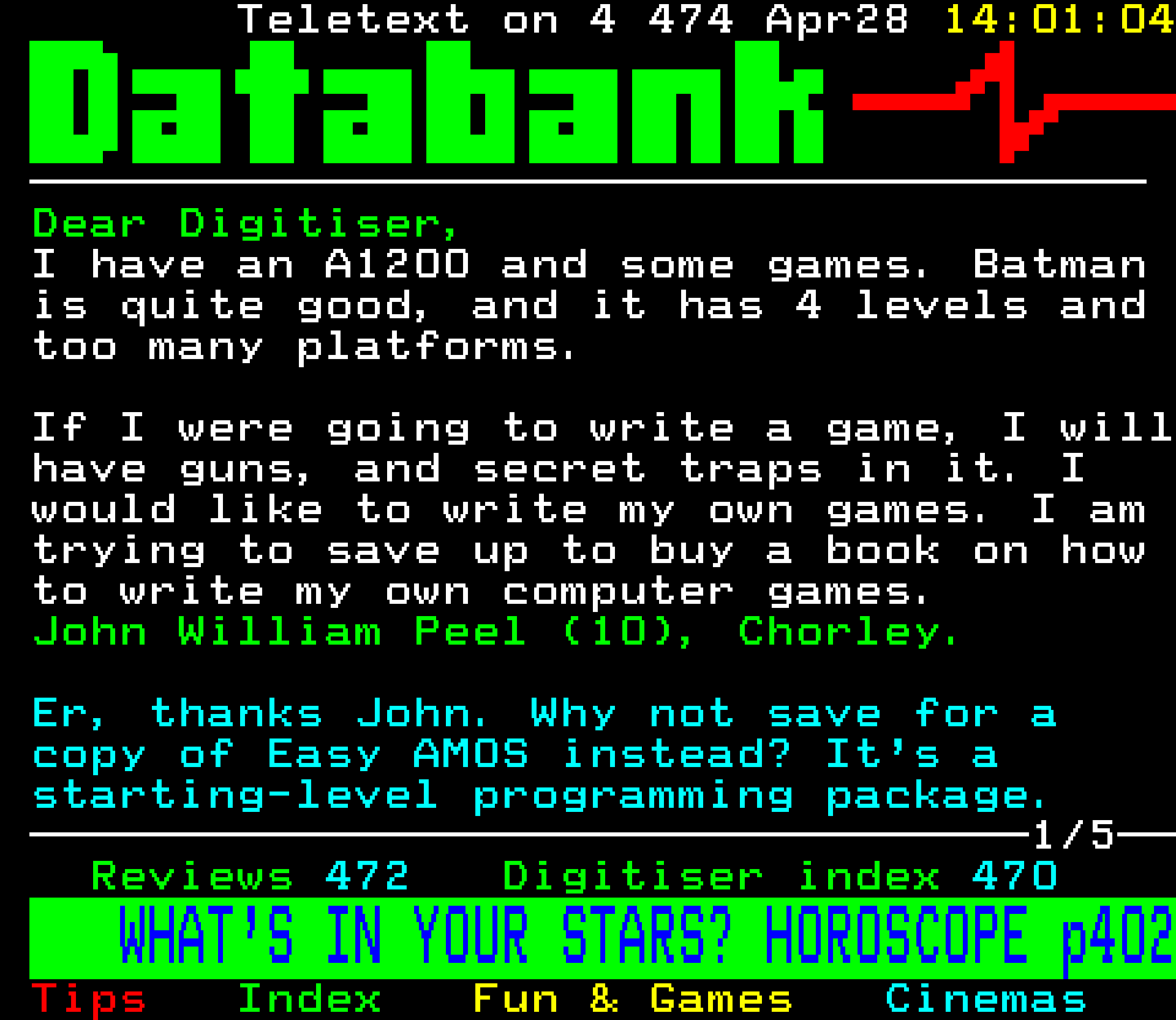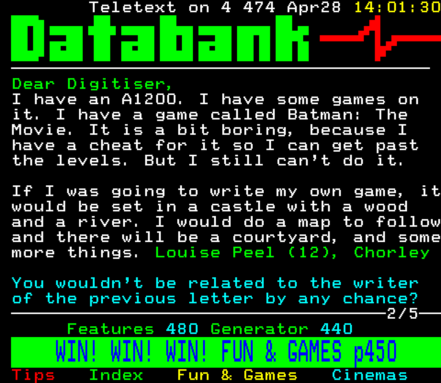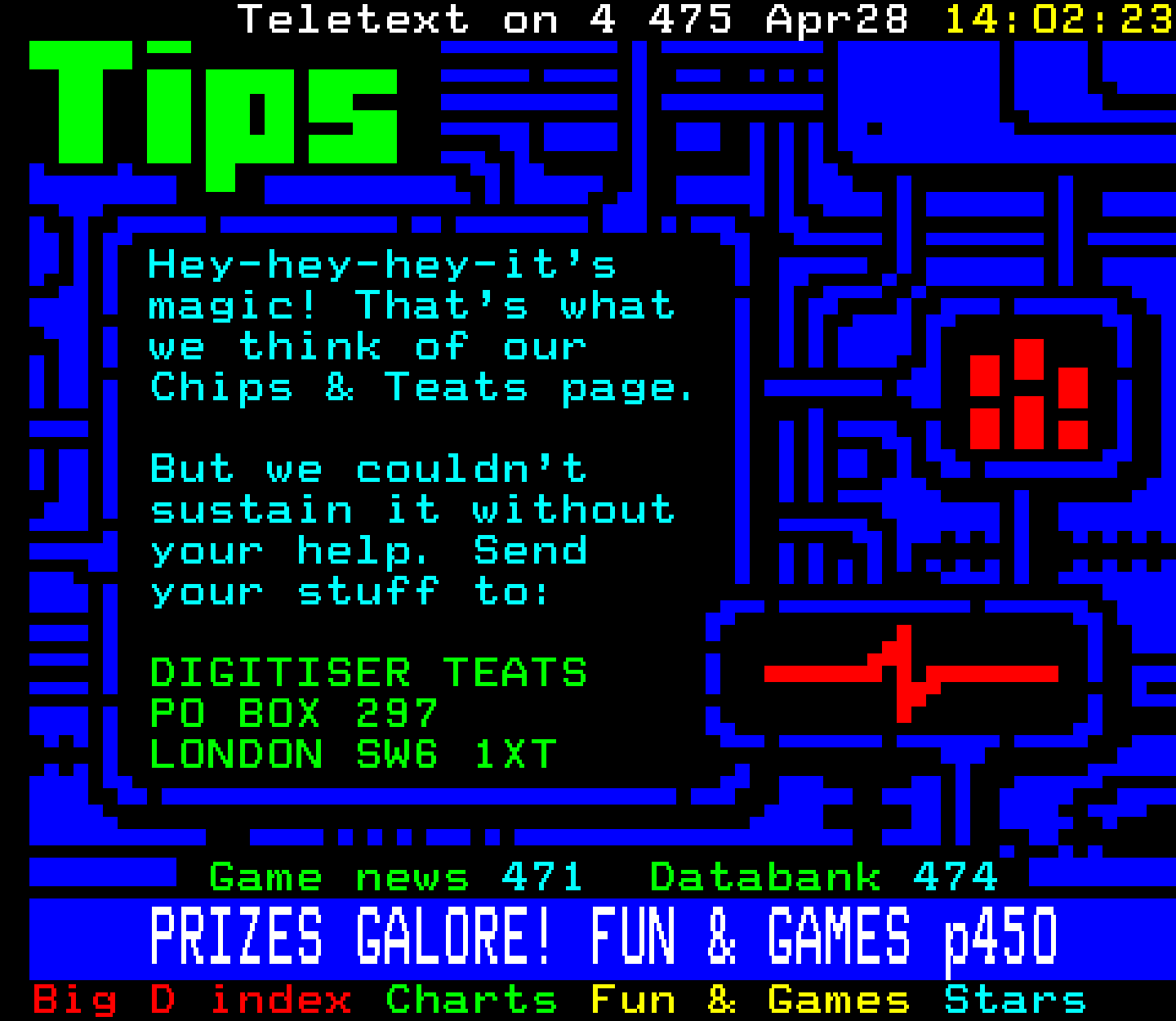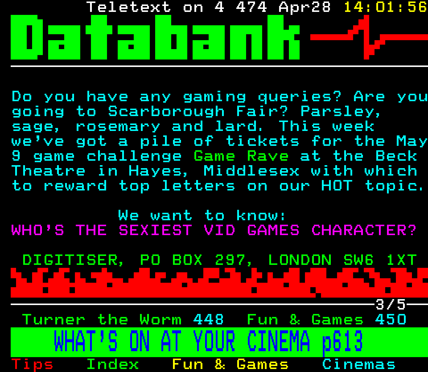 Do you have any full screenshot images of Digitiser that you'd like to see included in this archive? I'd just love to include them here - please email (superpage58@gmail.com) and the Digi community will be eternally grateful. Hey: even photos of your old TV showing the teletext page are good to be included!