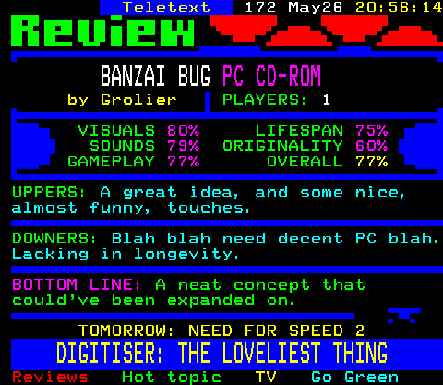 Do you have any full screenshot images of Digitiser that you'd like to see included in this archive? I'd just love to include them here - please email (superpage58@gmail.com) and the Digi community will be eternally grateful. Hey: even photos of your old TV showing the teletext page are good to be included!