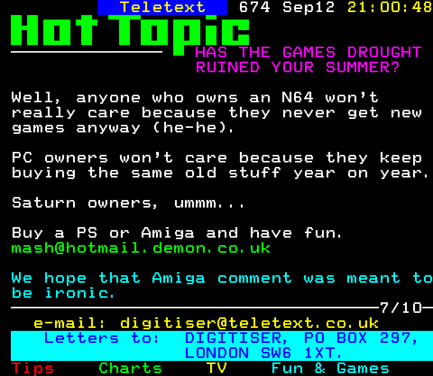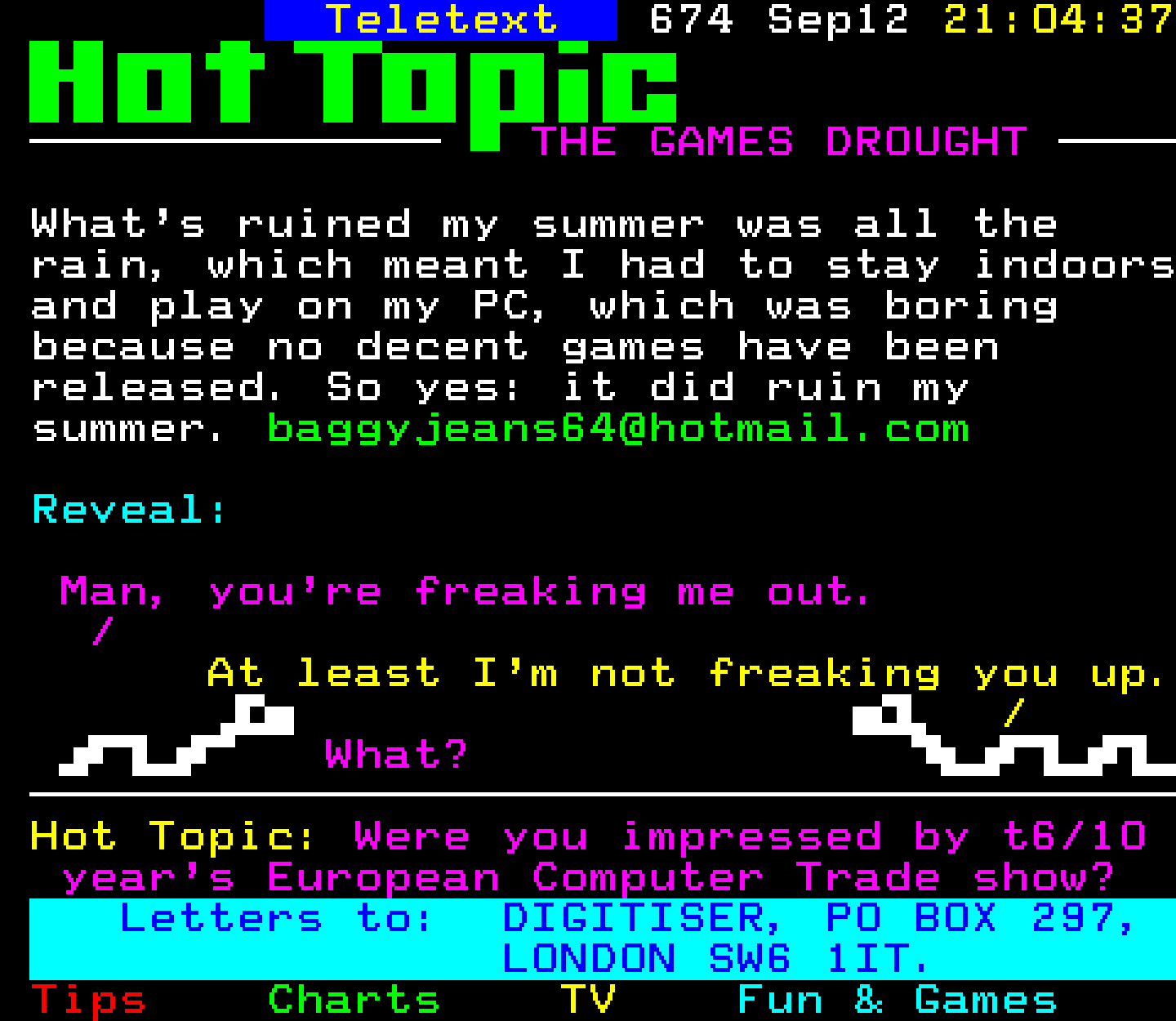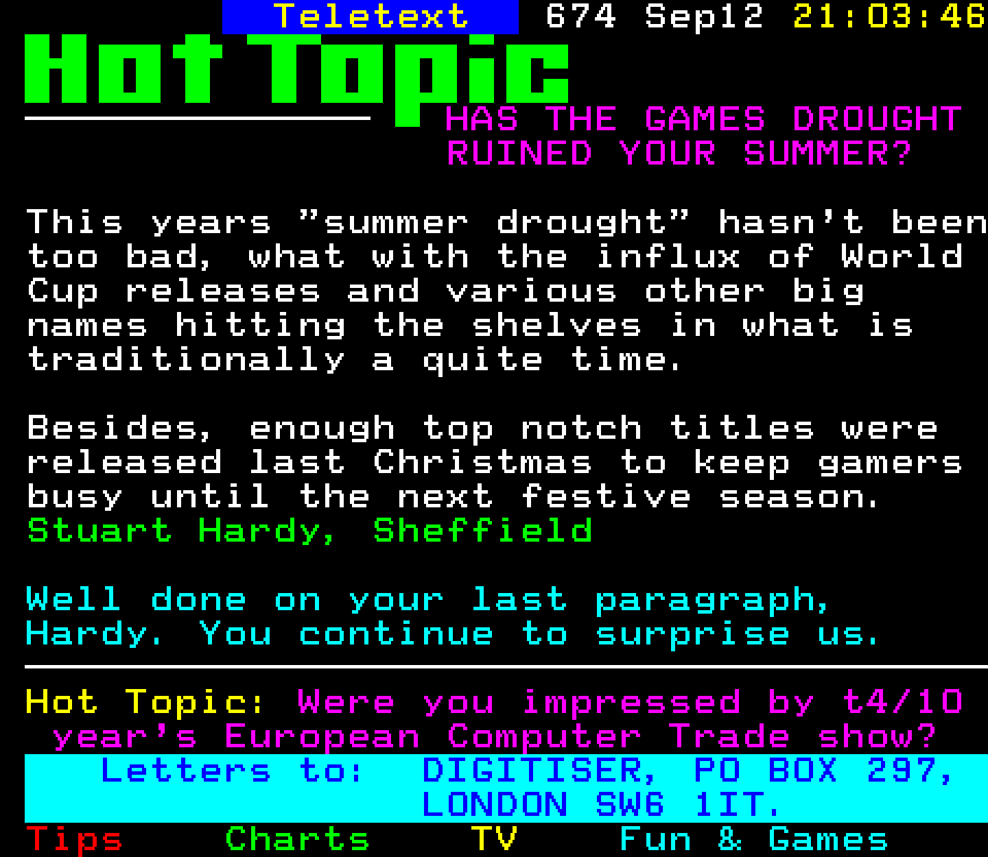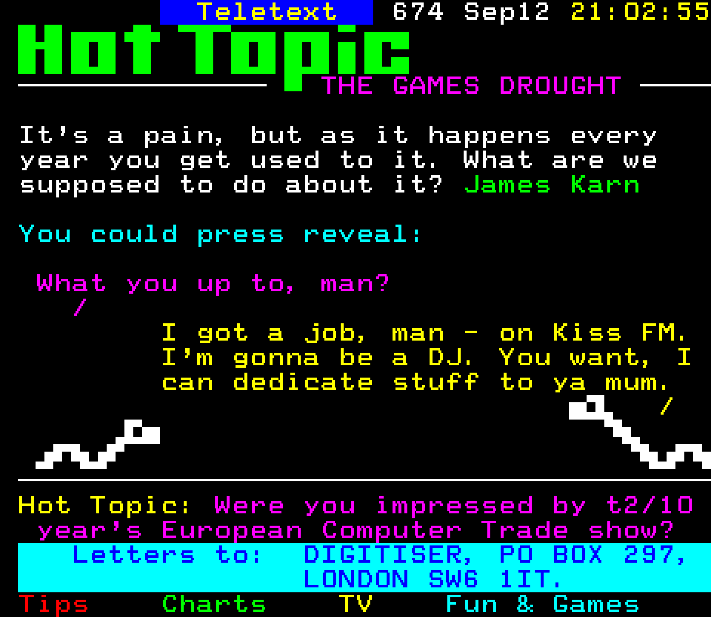 Do you have any full screenshot images of Digitiser that you'd like to see included in this archive? I'd just love to include them here - please email (superpage58@gmail.com) and the Digi community will be eternally grateful. Hey: even photos of your old TV showing the teletext page are good to be included!