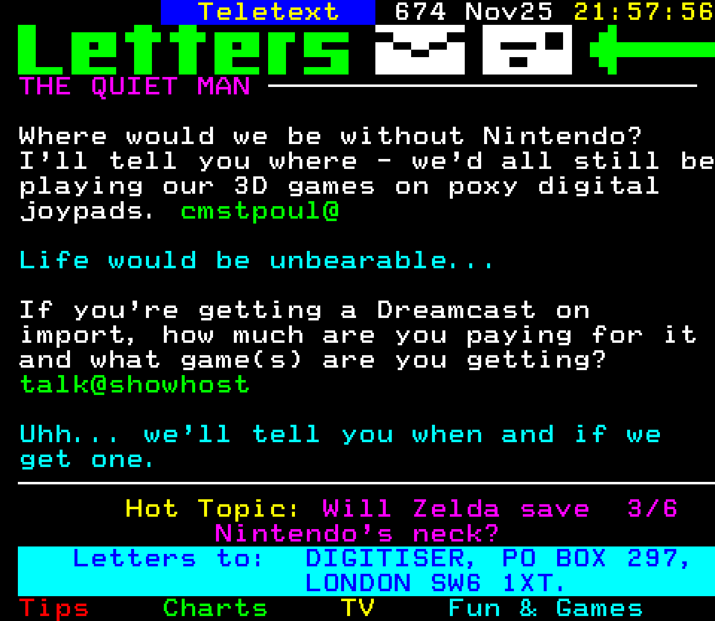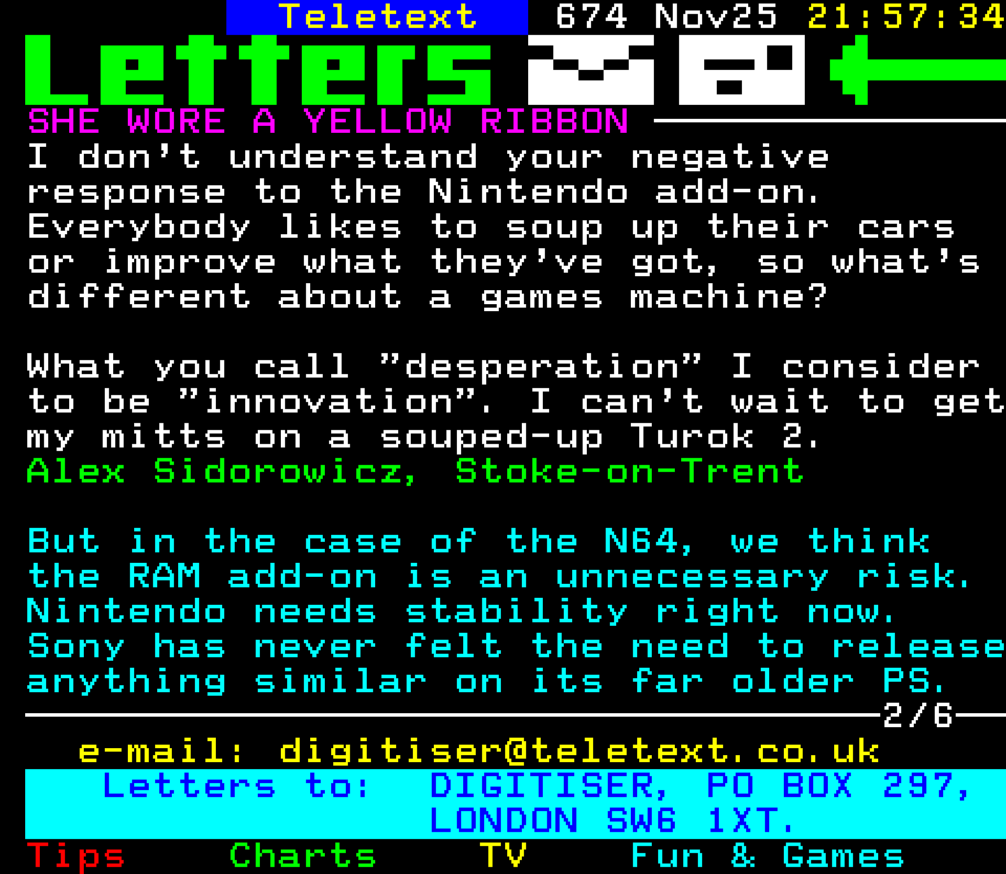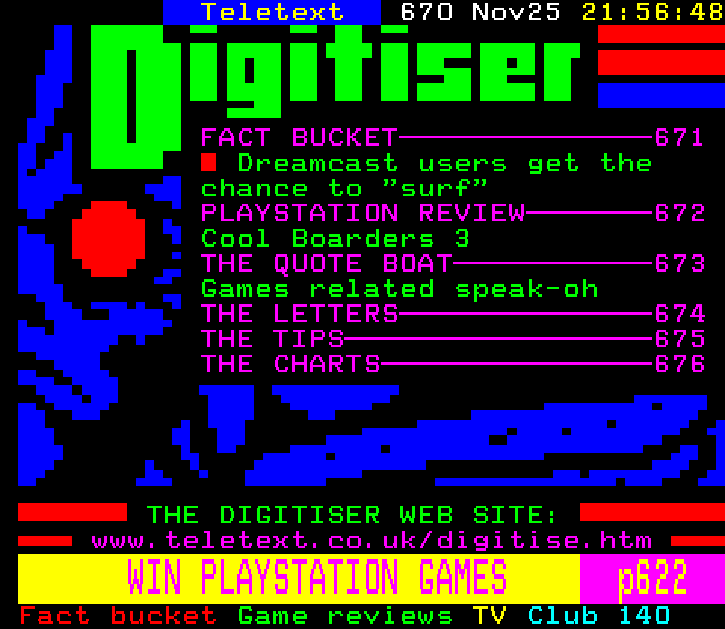 Do you have any full screenshot images of Digitiser that you'd like to see included in this archive? I'd just love to include them here - please email (superpage58@gmail.com) and the Digi community will be eternally grateful. Hey: even photos of your old TV showing the teletext page are good to be included!