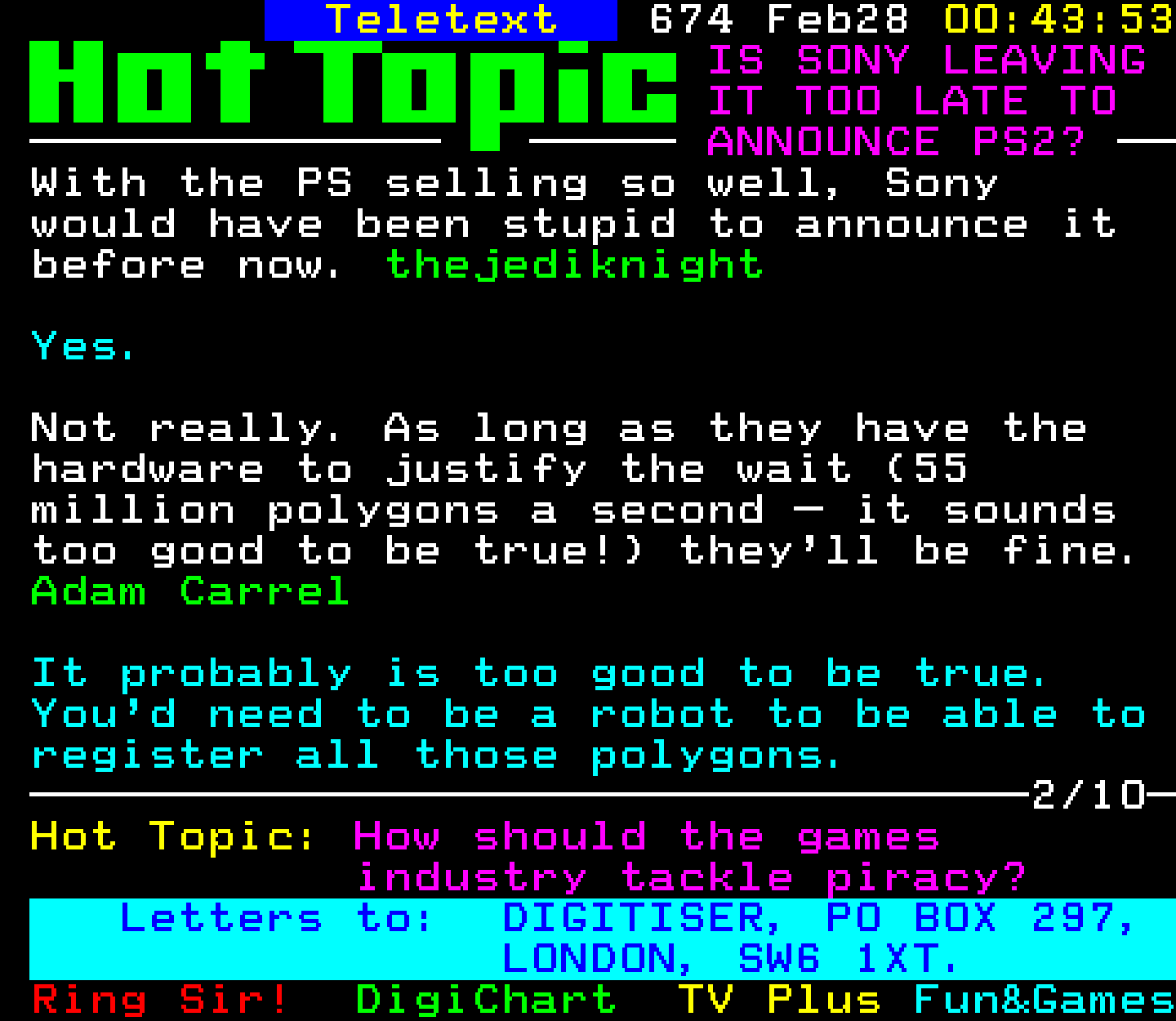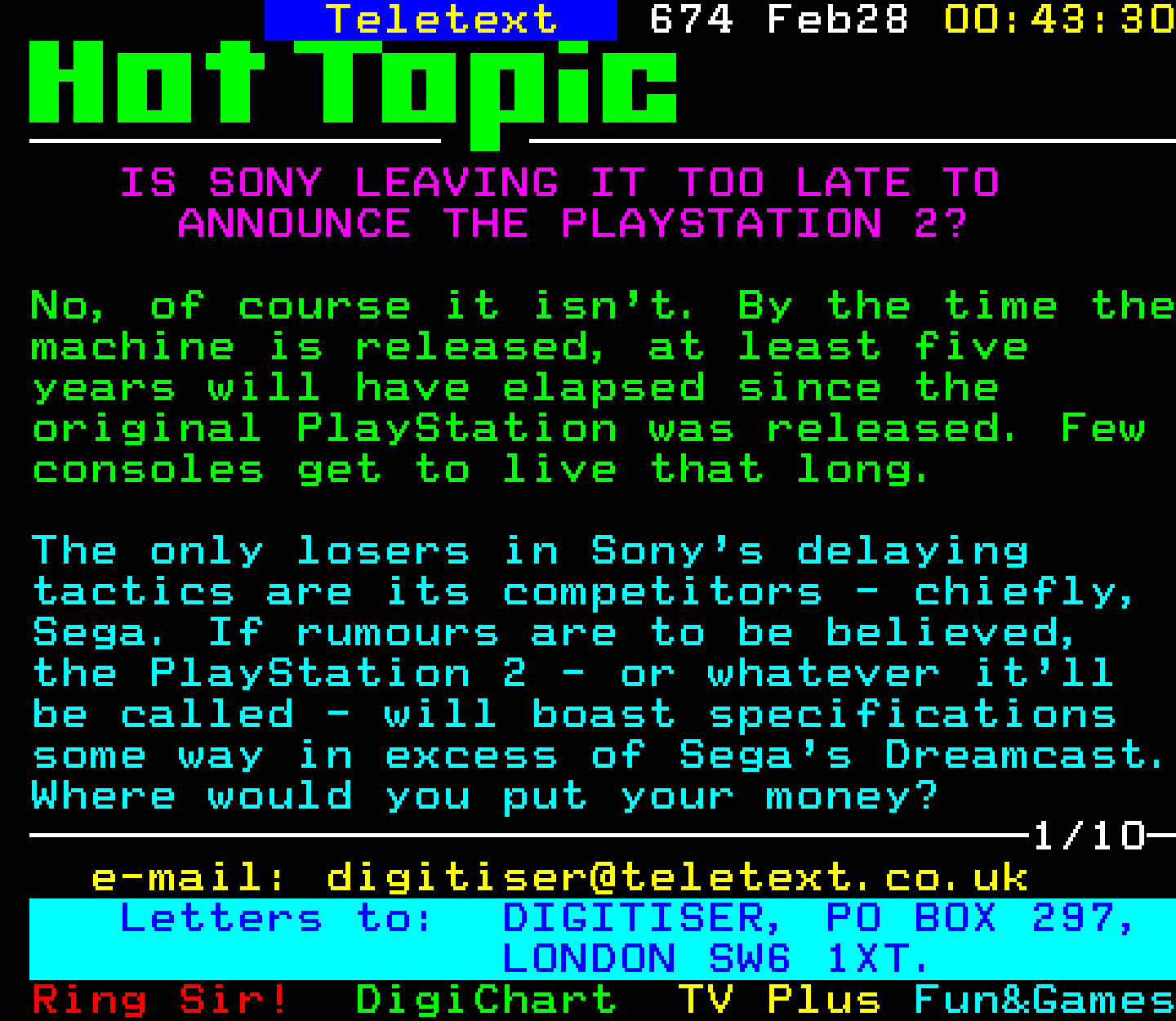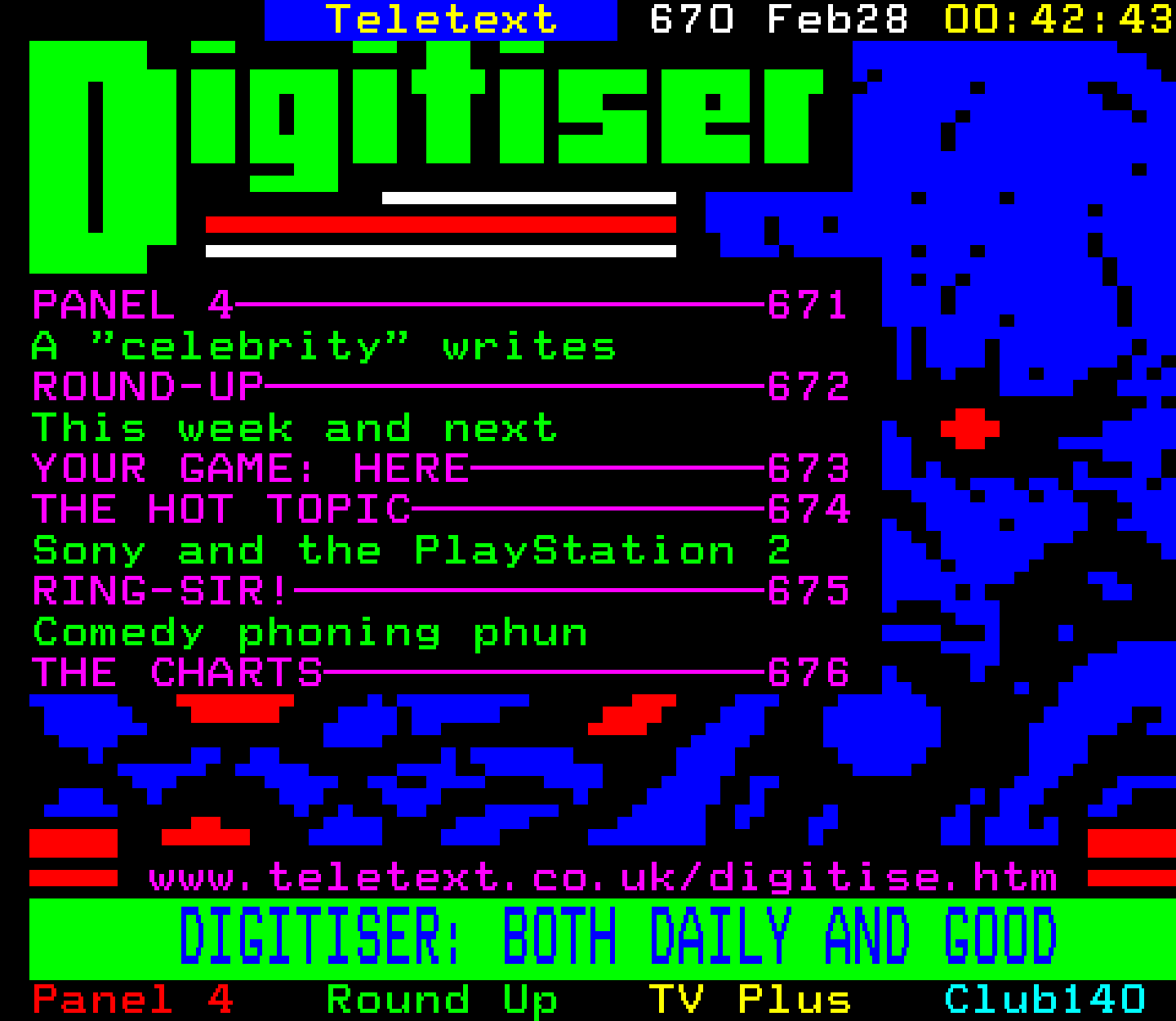 Do you have any full screenshot images of Digitiser that you'd like to see included in this archive? I'd just love to include them here - please email (superpage58@gmail.com) and the Digi community will be eternally grateful. Hey: even photos of your old TV showing the teletext page are good to be included!