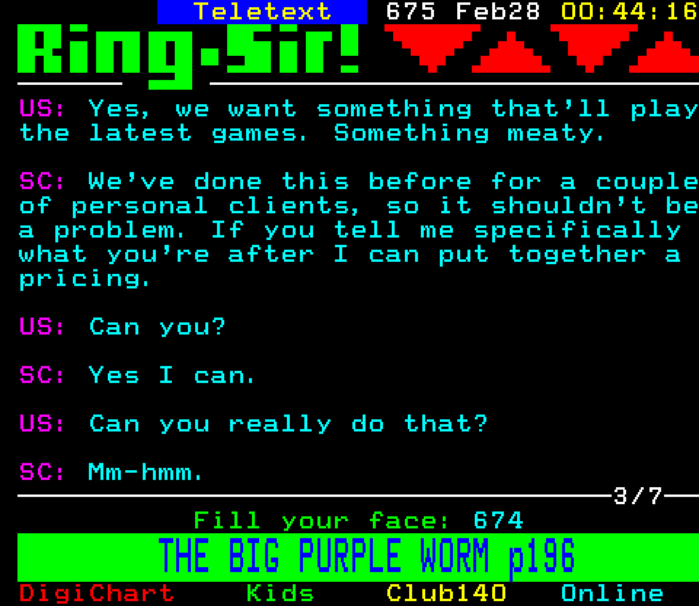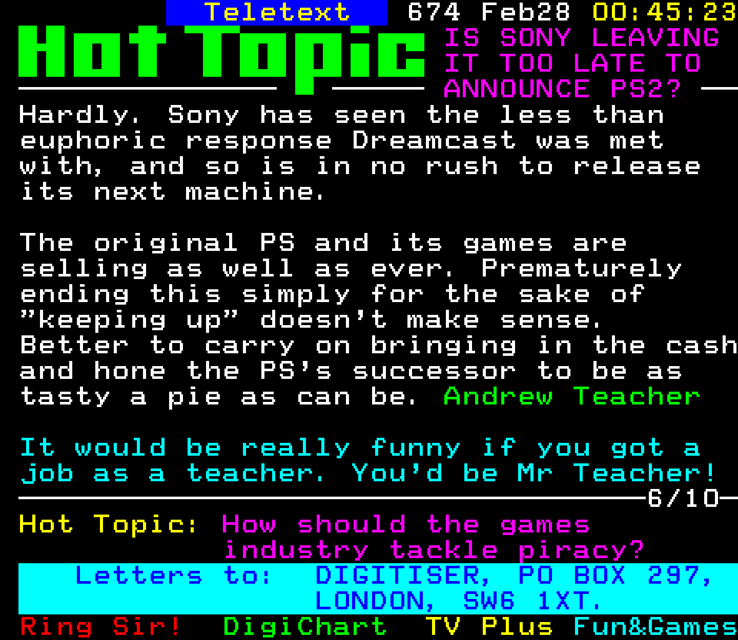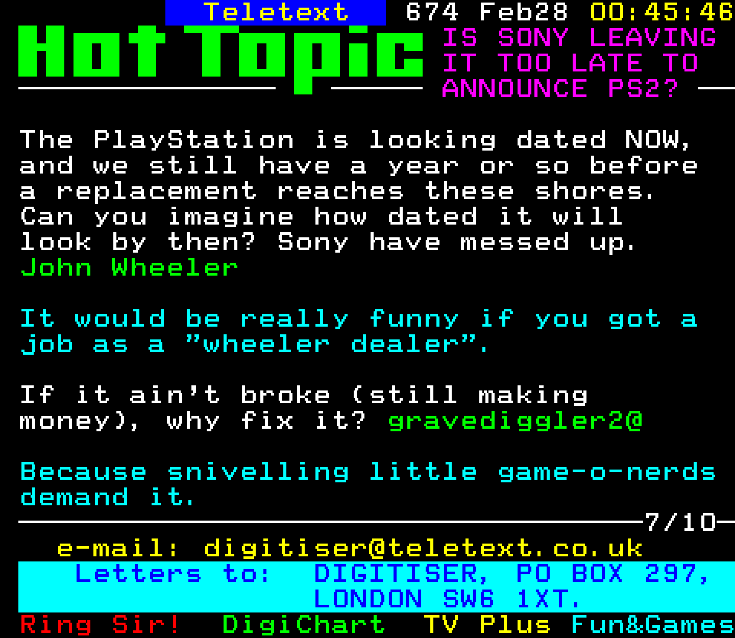 Do you have any full screenshot images of Digitiser that you'd like to see included in this archive? I'd just love to include them here - please email (superpage58@gmail.com) and the Digi community will be eternally grateful. Hey: even photos of your old TV showing the teletext page are good to be included!