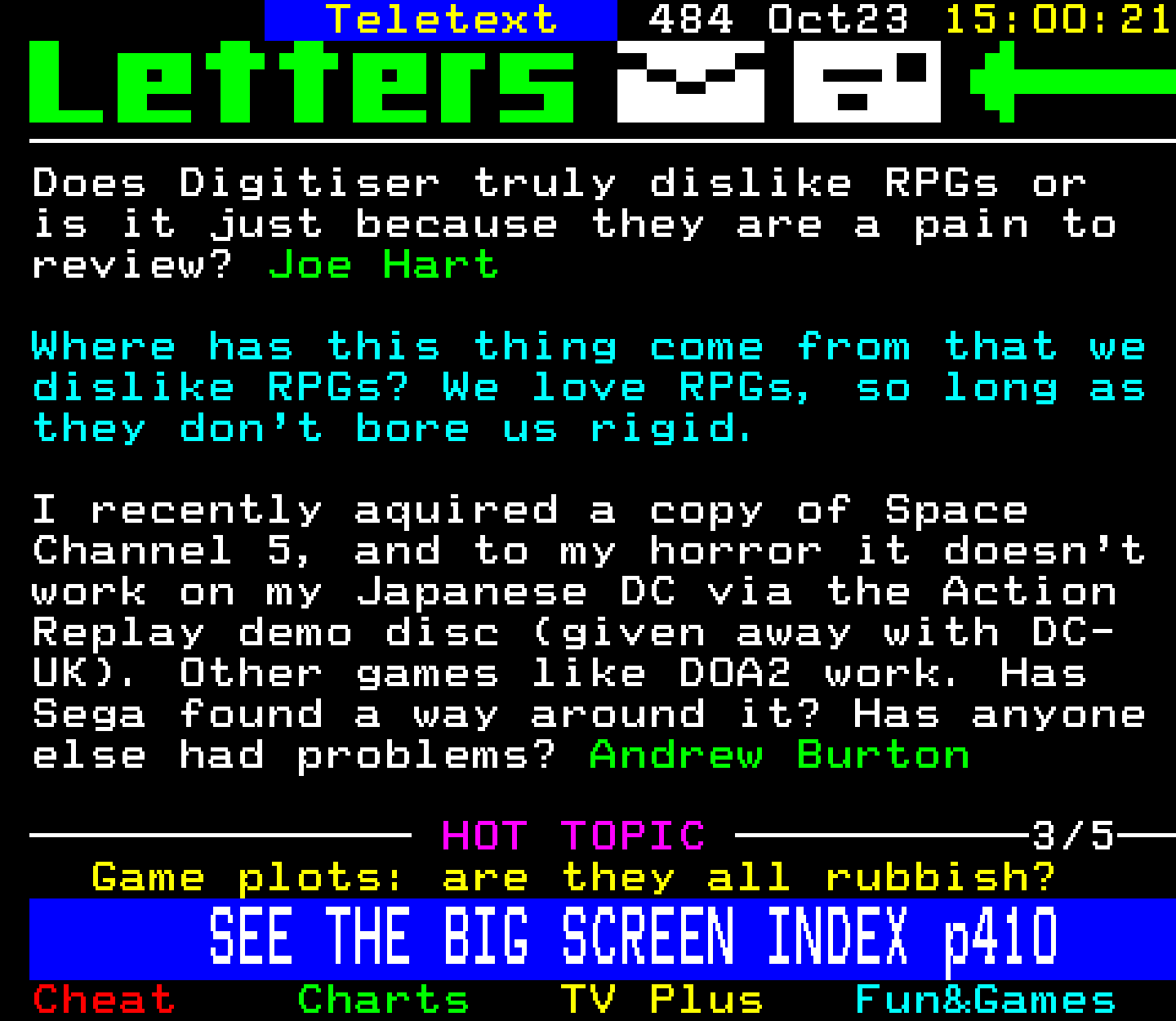 Do you have any full screenshot images of Digitiser that you'd like to see included in this archive? I'd just love to include them here - please email (superpage58@gmail.com) and the Digi community will be eternally grateful. Hey: even photos of your old TV showing the teletext page are good to be included!