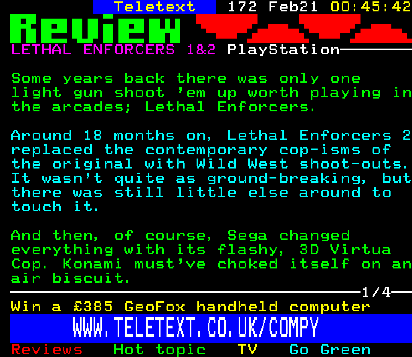 Lethal Enforcers 1 And 2 - PlayStation, 20/2/98