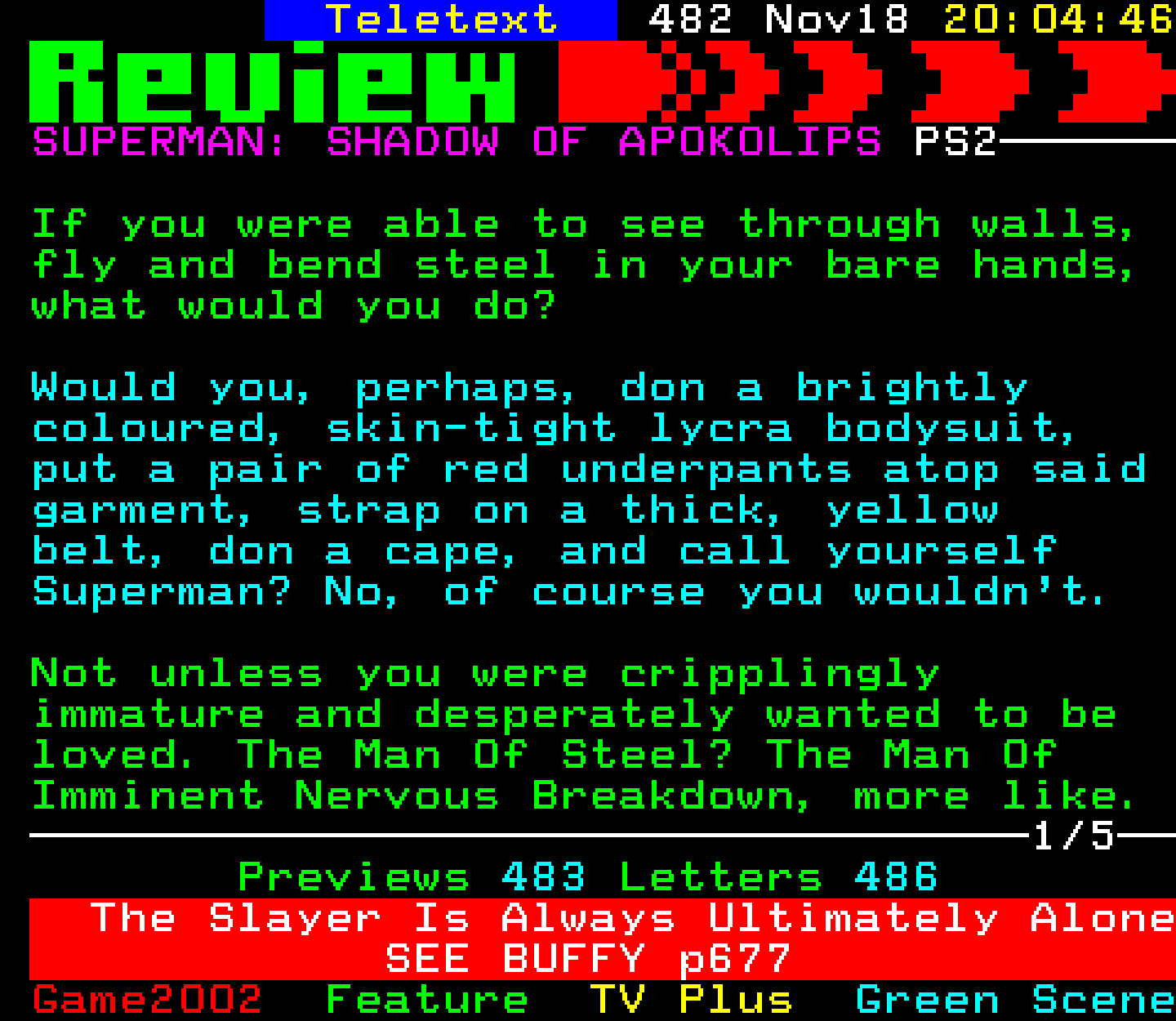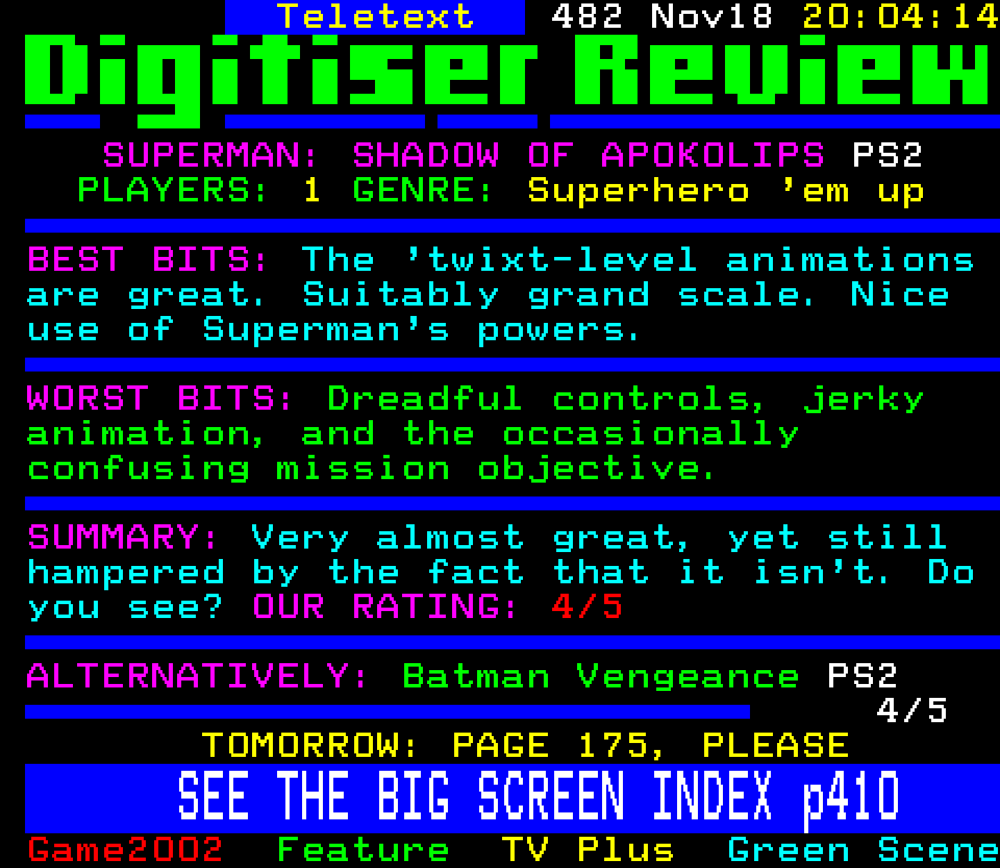 Superman: Shadow Of Apokolips - PlayStation 2, 18/11/02