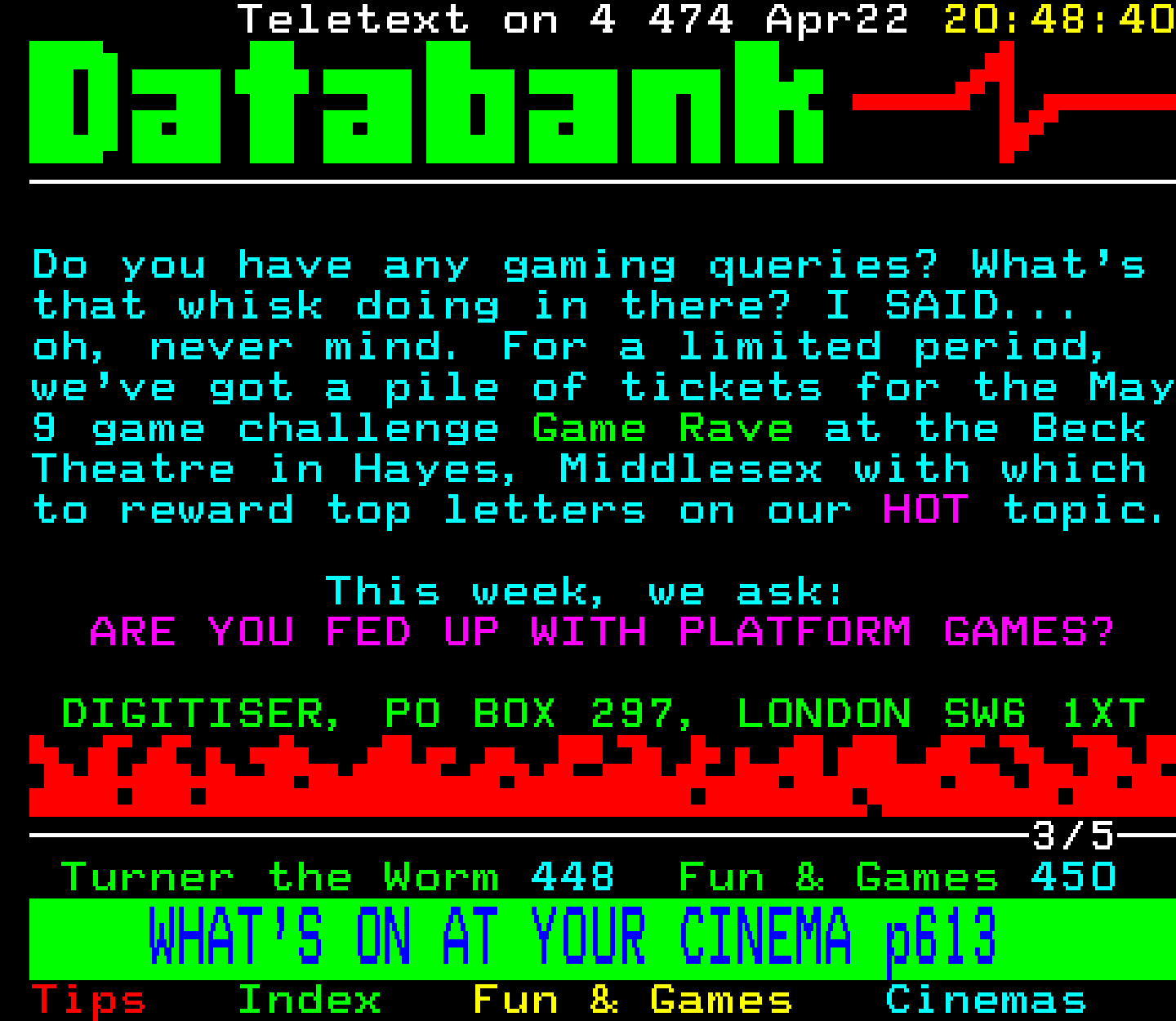 Do you have any full screenshot images of Digitiser that you'd like to see included in this archive? I'd just love to include them here - please email (superpage58@gmail.com) and the Digi community will be eternally grateful. Hey: even photos of your old TV showing the teletext page are good to be included!