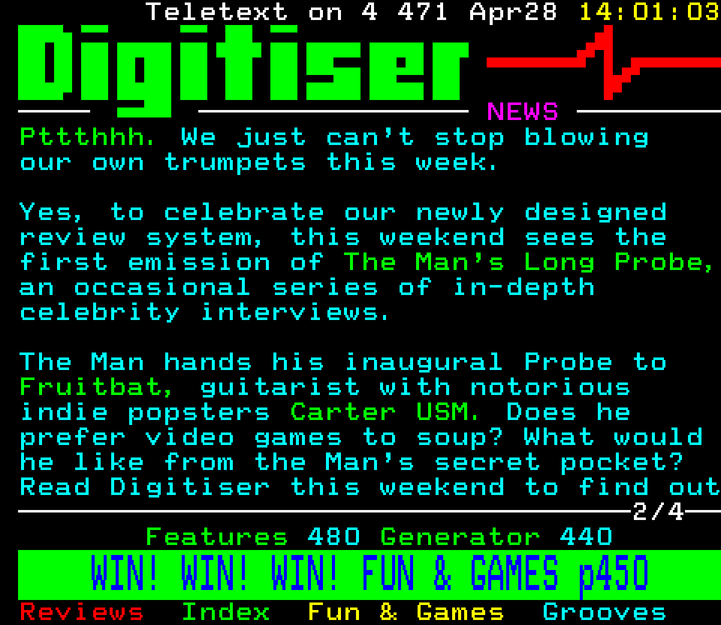 Do you have any full screenshot images of Digitiser that you'd like to see included in this archive? I'd just love to include them here - please email (superpage58@gmail.com) and the Digi community will be eternally grateful. Hey: even photos of your old TV showing the teletext page are good to be included!