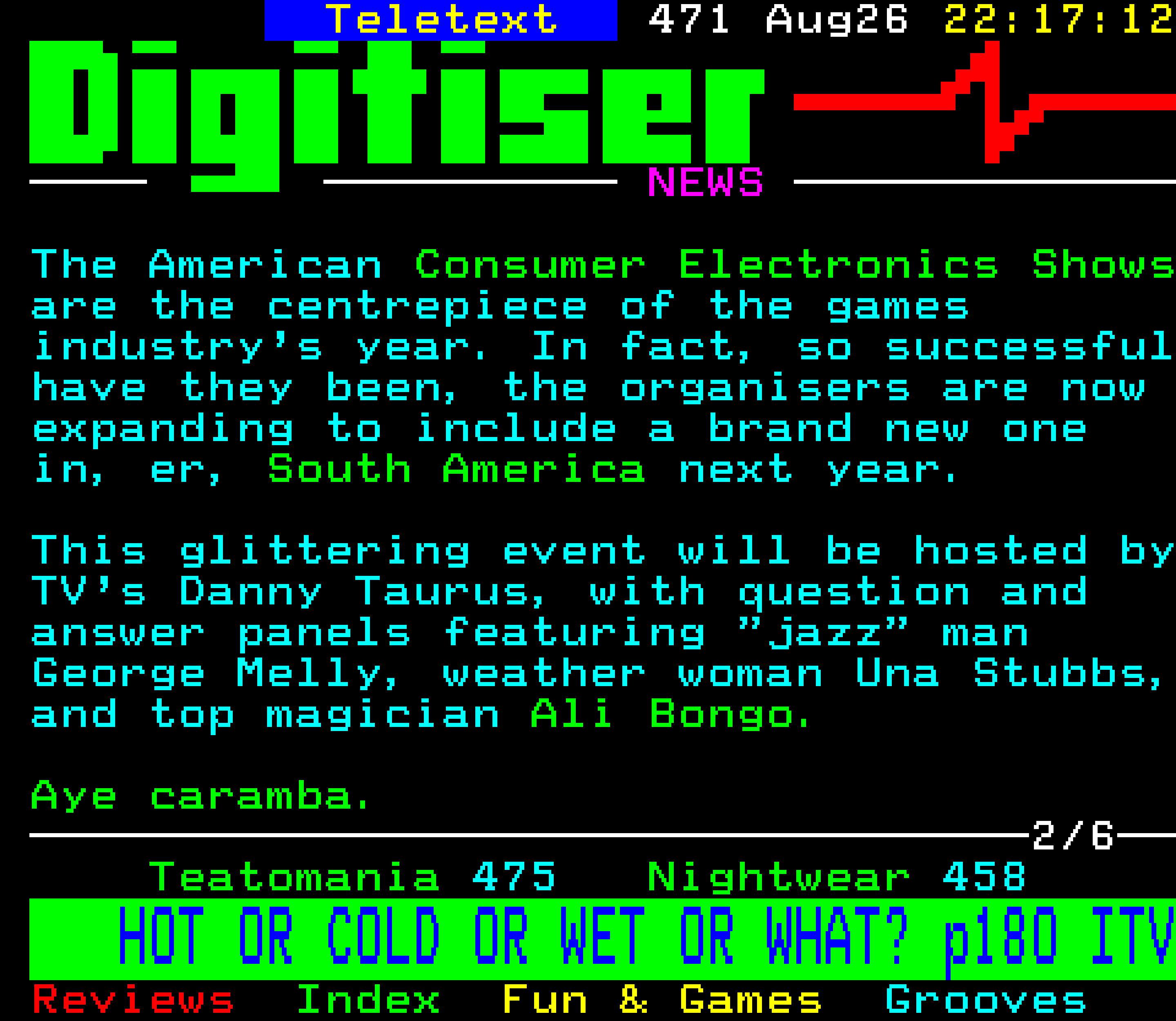 Do you have any full screenshot images of Digitiser that you'd like to see included in this archive? I'd just love to include them here - please email (superpage58@gmail.com) and the Digi community will be eternally grateful. Hey: even photos of your old TV showing the teletext page are good to be included!