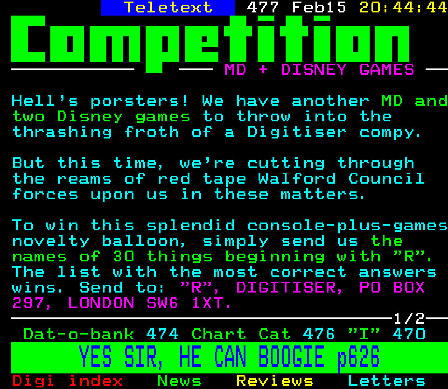 Do you have any full screenshot images of Digitiser that you'd like to see included in this archive? I'd just love to include them here - please email (superpage58@gmail.com) and the Digi community will be eternally grateful. Hey: even photos of your old TV showing the teletext page are good to be included!
