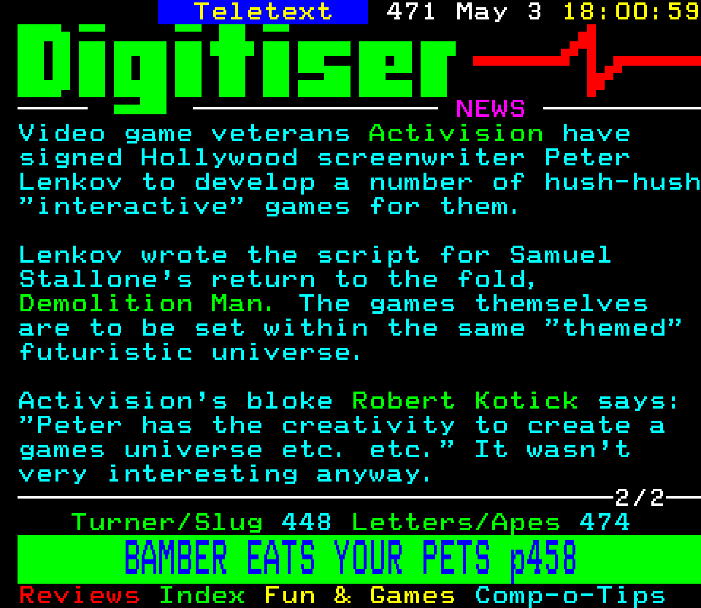 Do you have any full screenshot images of Digitiser that you'd like to see included in this archive? I'd just love to include them here - please email (superpage58@gmail.com) and the Digi community will be eternally grateful. Hey: even photos of your old TV showing the teletext page are good to be included!