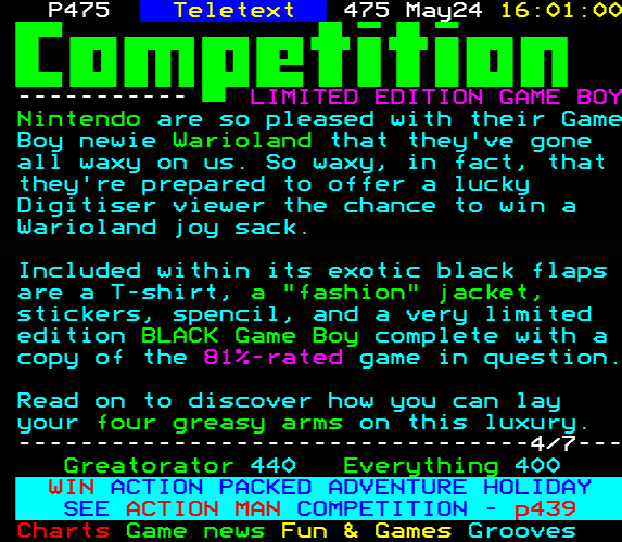 Do you have any full screenshot images of Digitiser that you'd like to see included in this archive? I'd just love to include them here - please email (superpage58@gmail.com) and the Digi community will be eternally grateful. Hey: even photos of your old TV showing the teletext page are good to be included!
