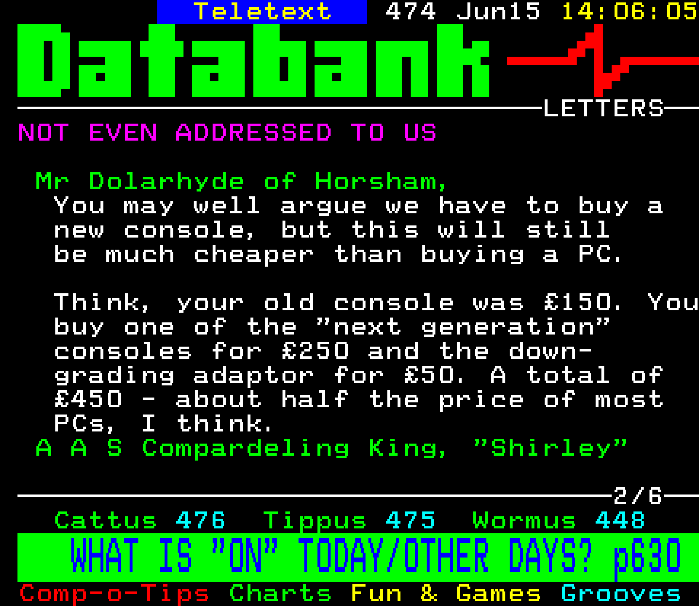 Do you have any full screenshot images of Digitiser that you'd like to see included in this archive? I'd just love to include them here - please email (superpage58@gmail.com) and the Digi community will be eternally grateful. Hey: even photos of your old TV showing the teletext page are good to be included!