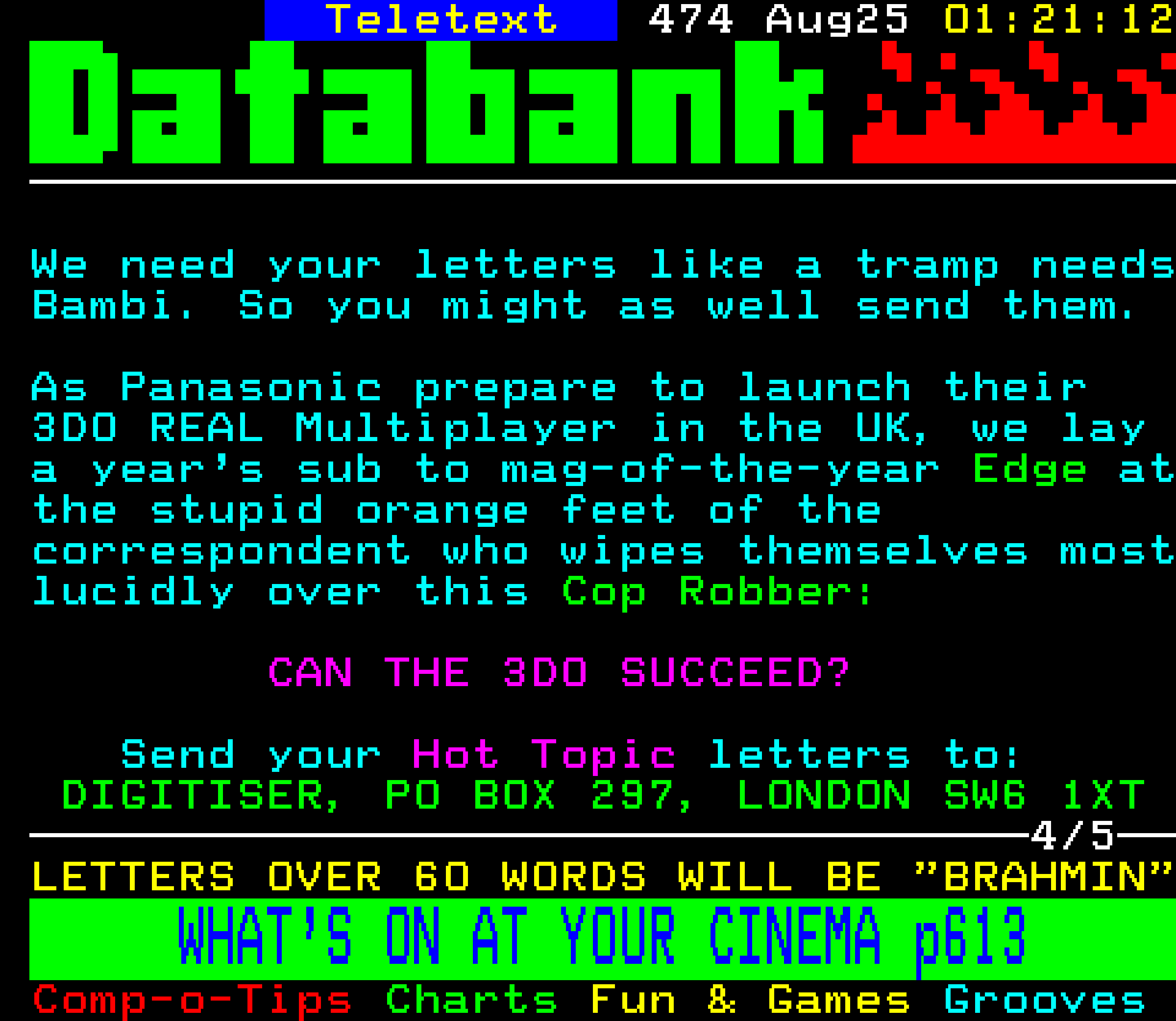 Do you have any full screenshot images of Digitiser that you'd like to see included in this archive? I'd just love to include them here - please email (superpage58@gmail.com) and the Digi community will be eternally grateful. Hey: even photos of your old TV showing the teletext page are good to be included!