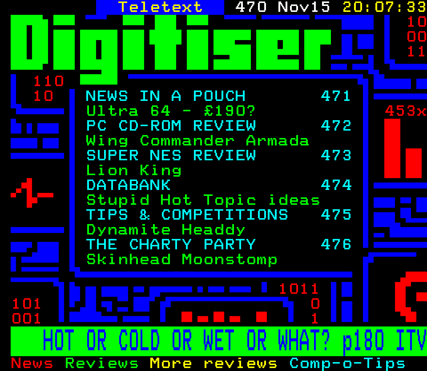 Do you have any full screenshot images of Digitiser that you'd like to see included in this archive? I'd just love to include them here - please email (superpage58@gmail.com) and the Digi community will be eternally grateful. Hey: even photos of your old TV showing the teletext page are good to be included!