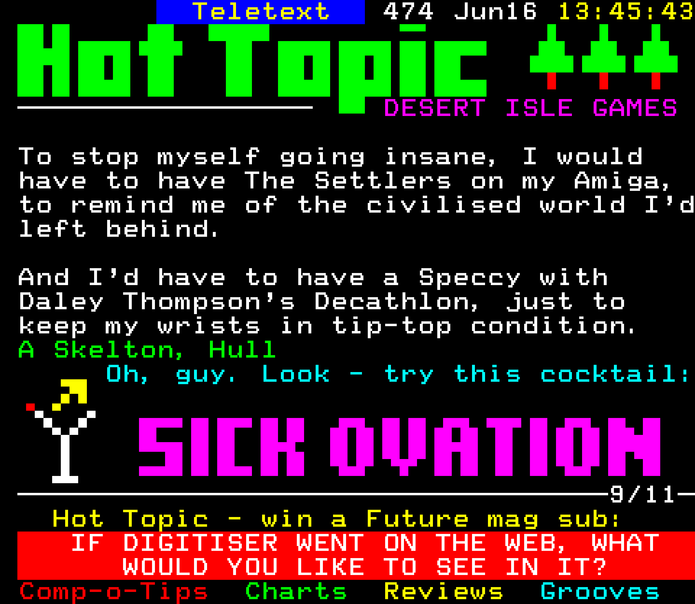 Do you have any full screenshot images of Digitiser that you'd like to see included in this archive? I'd just love to include them here - please email (superpage58@gmail.com) and the Digi community will be eternally grateful. Hey: even photos of your old TV showing the teletext page are good to be included!