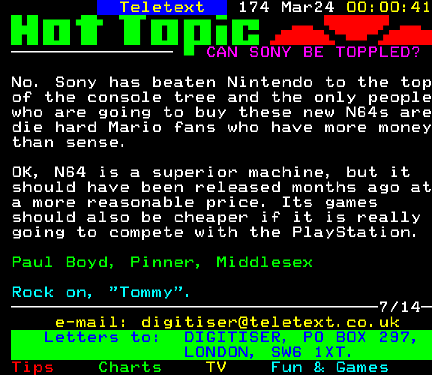 Do you have any full screenshot images of Digitiser that you'd like to see included in this archive? I'd just love to include them here - please email (superpage58@gmail.com) and the Digi community will be eternally grateful. Hey: even photos of your old TV showing the teletext page are good to be included!
