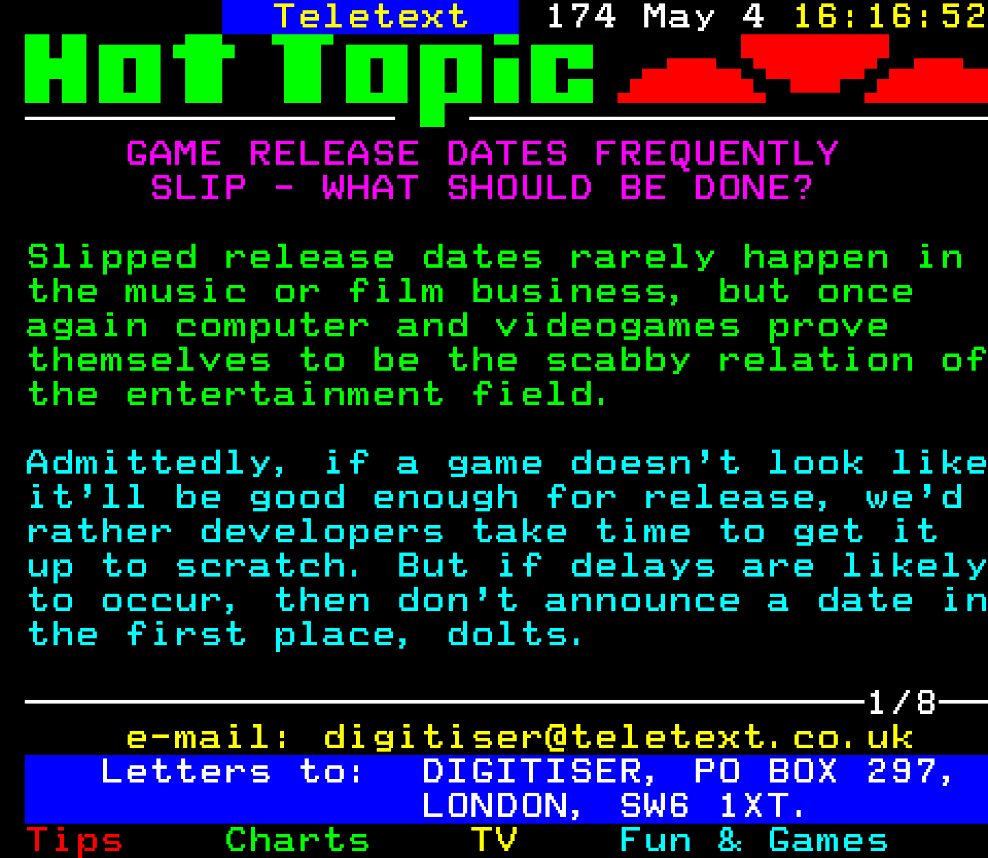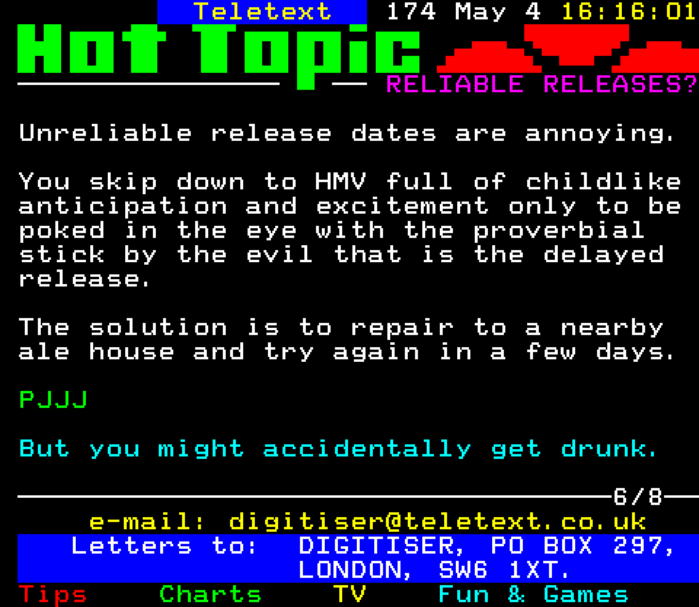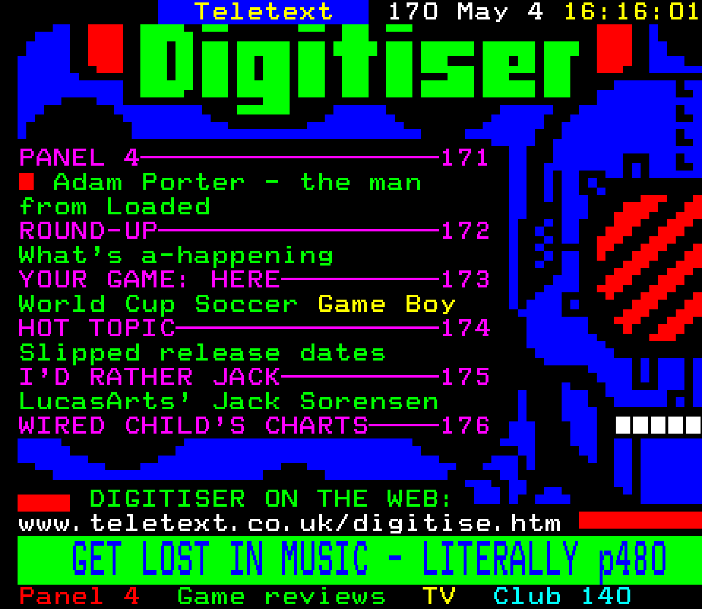 Do you have any full screenshot images of Digitiser that you'd like to see included in this archive? I'd just love to include them here - please email (superpage58@gmail.com) and the Digi community will be eternally grateful. Hey: even photos of your old TV showing the teletext page are good to be included!