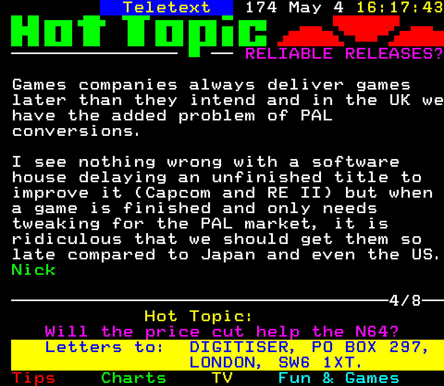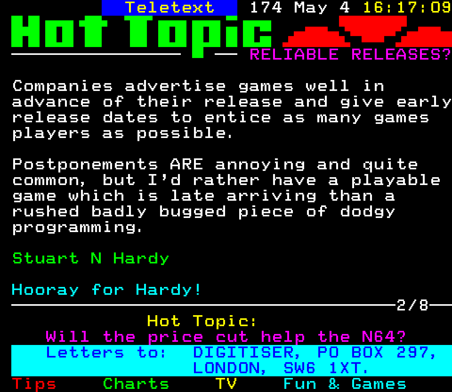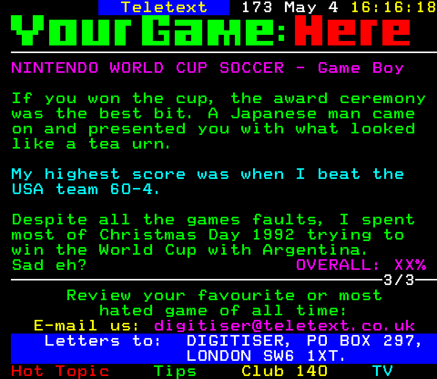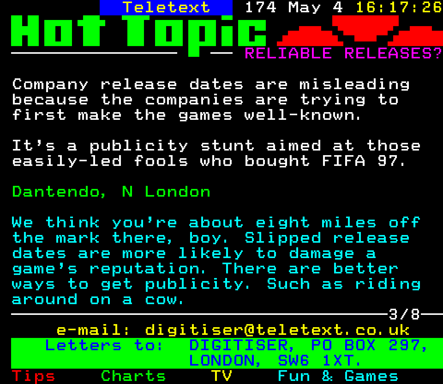 Do you have any full screenshot images of Digitiser that you'd like to see included in this archive? I'd just love to include them here - please email (superpage58@gmail.com) and the Digi community will be eternally grateful. Hey: even photos of your old TV showing the teletext page are good to be included!