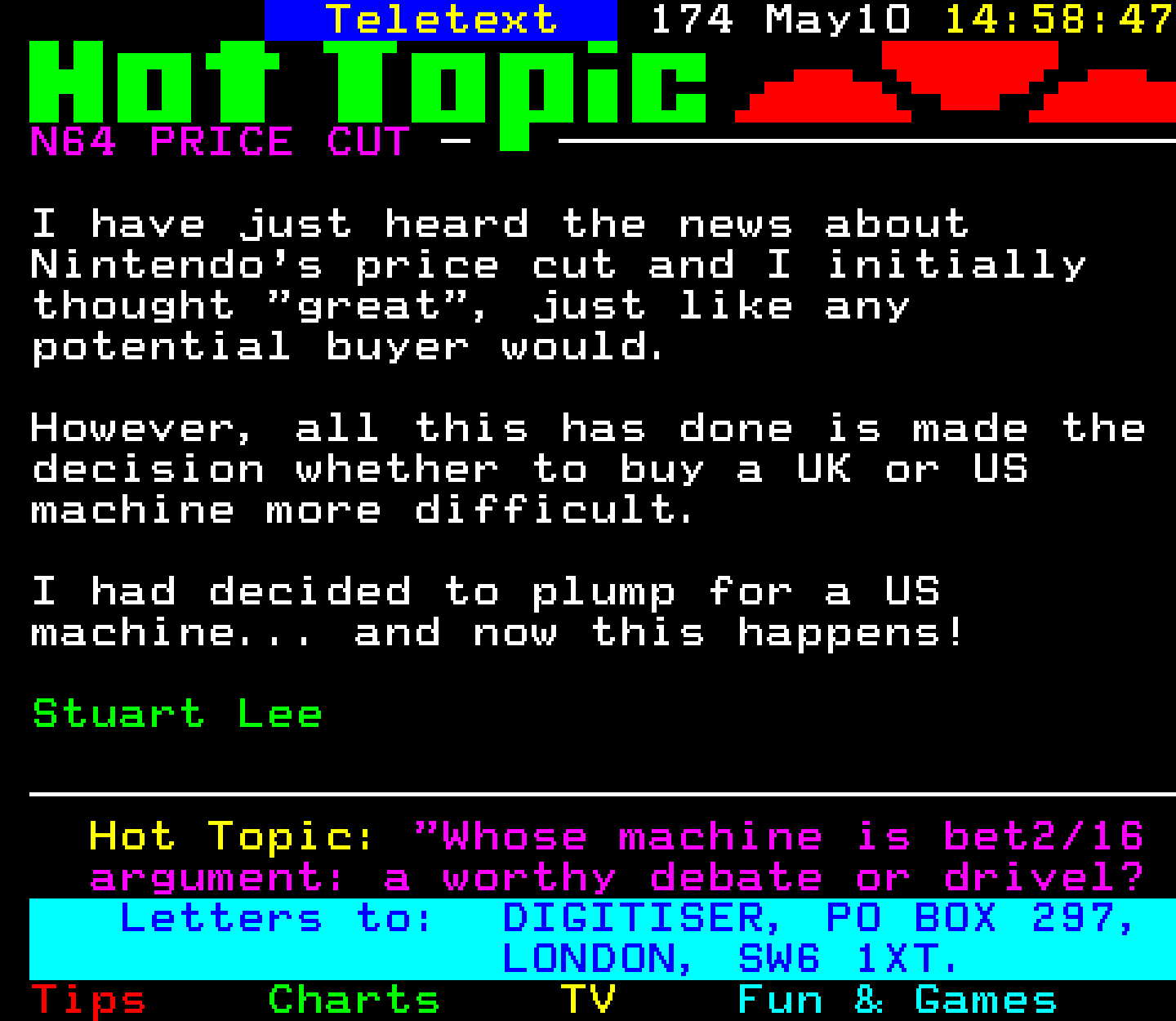 Do you have any full screenshot images of Digitiser that you'd like to see included in this archive? I'd just love to include them here - please email (superpage58@gmail.com) and the Digi community will be eternally grateful. Hey: even photos of your old TV showing the teletext page are good to be included!