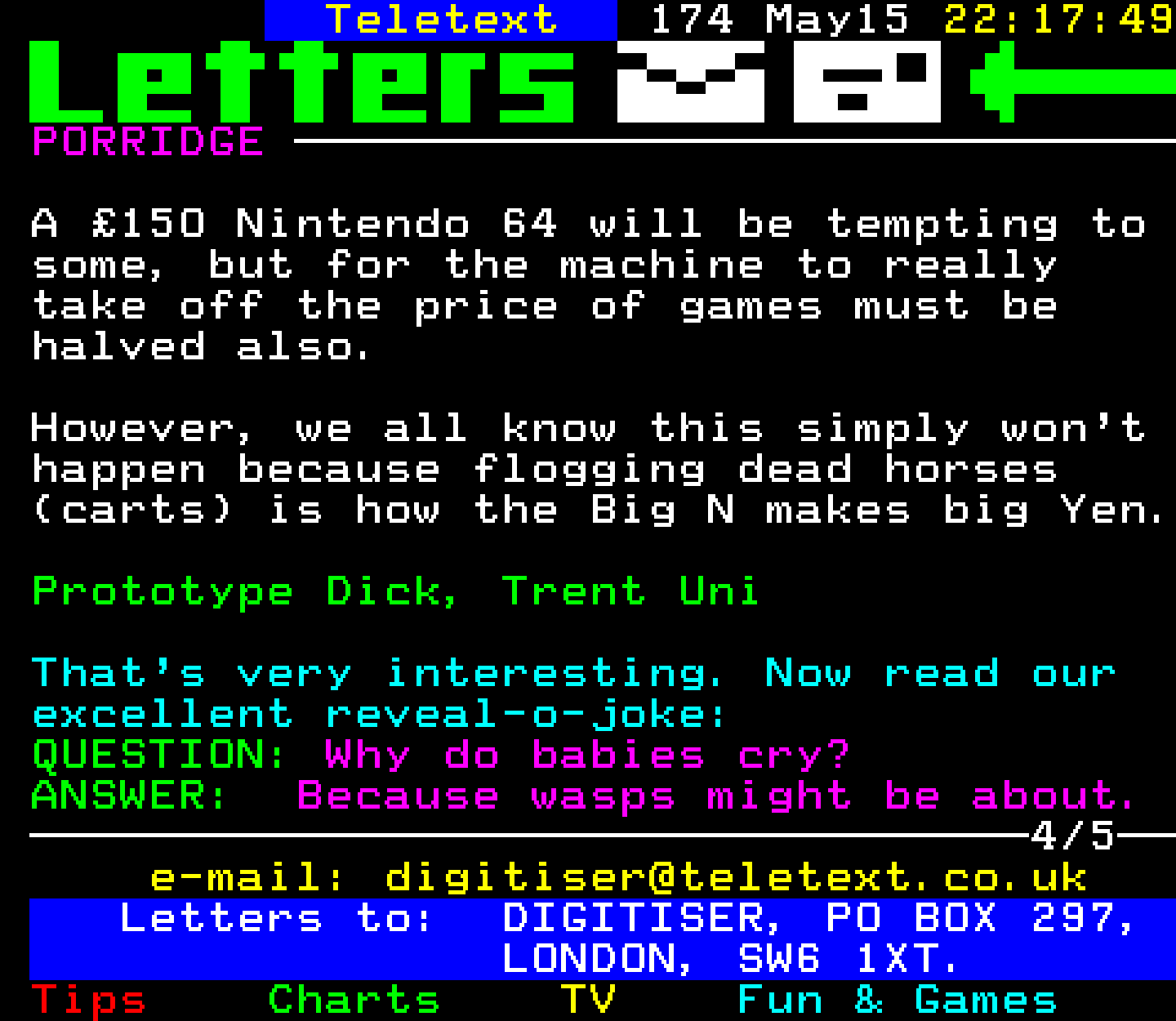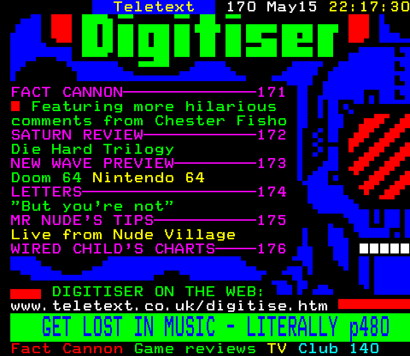 Do you have any full screenshot images of Digitiser that you'd like to see included in this archive? I'd just love to include them here - please email (superpage58@gmail.com) and the Digi community will be eternally grateful. Hey: even photos of your old TV showing the teletext page are good to be included!