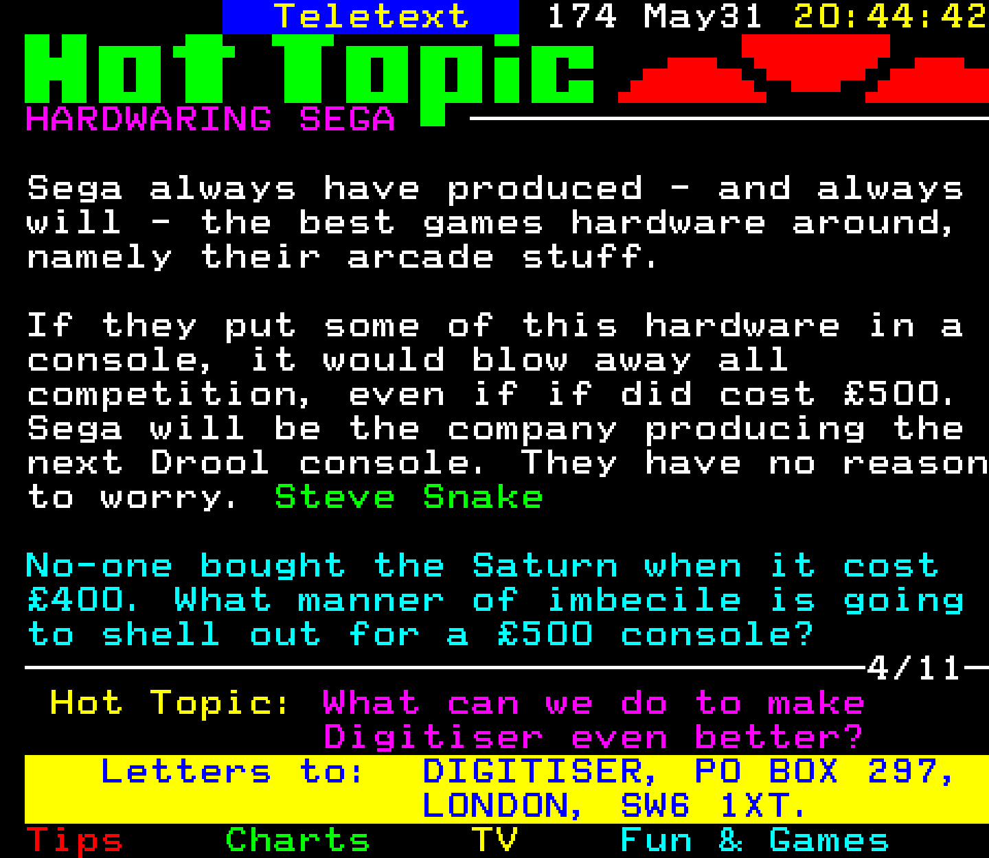 Do you have any full screenshot images of Digitiser that you'd like to see included in this archive? I'd just love to include them here - please email (superpage58@gmail.com) and the Digi community will be eternally grateful. Hey: even photos of your old TV showing the teletext page are good to be included!
