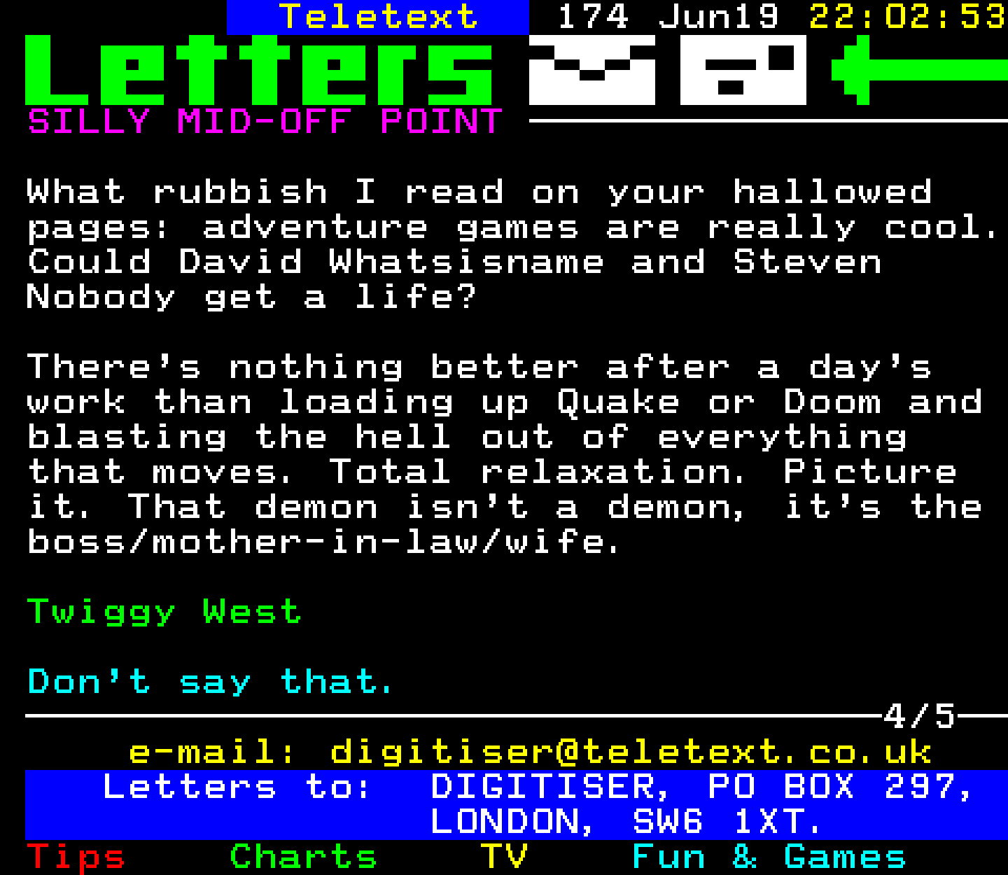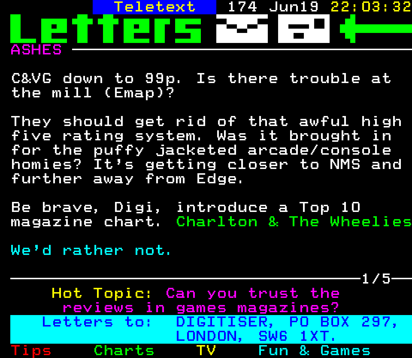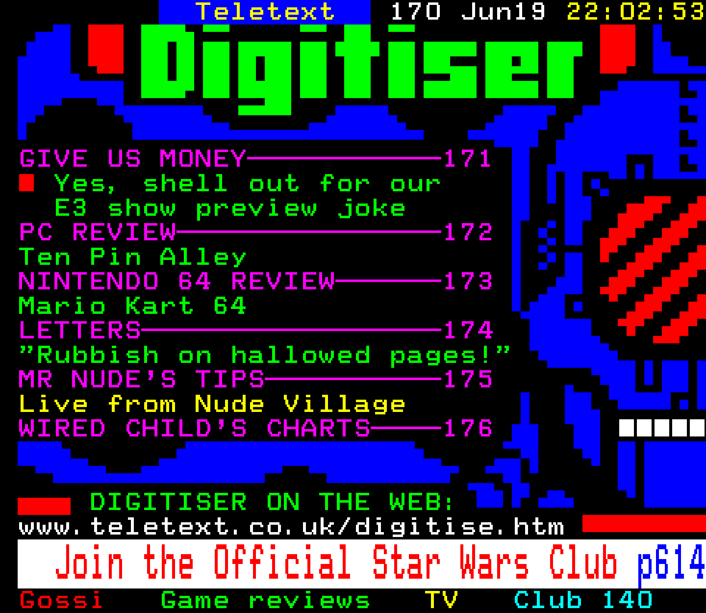 Do you have any full screenshot images of Digitiser that you'd like to see included in this archive? I'd just love to include them here - please email (superpage58@gmail.com) and the Digi community will be eternally grateful. Hey: even photos of your old TV showing the teletext page are good to be included!