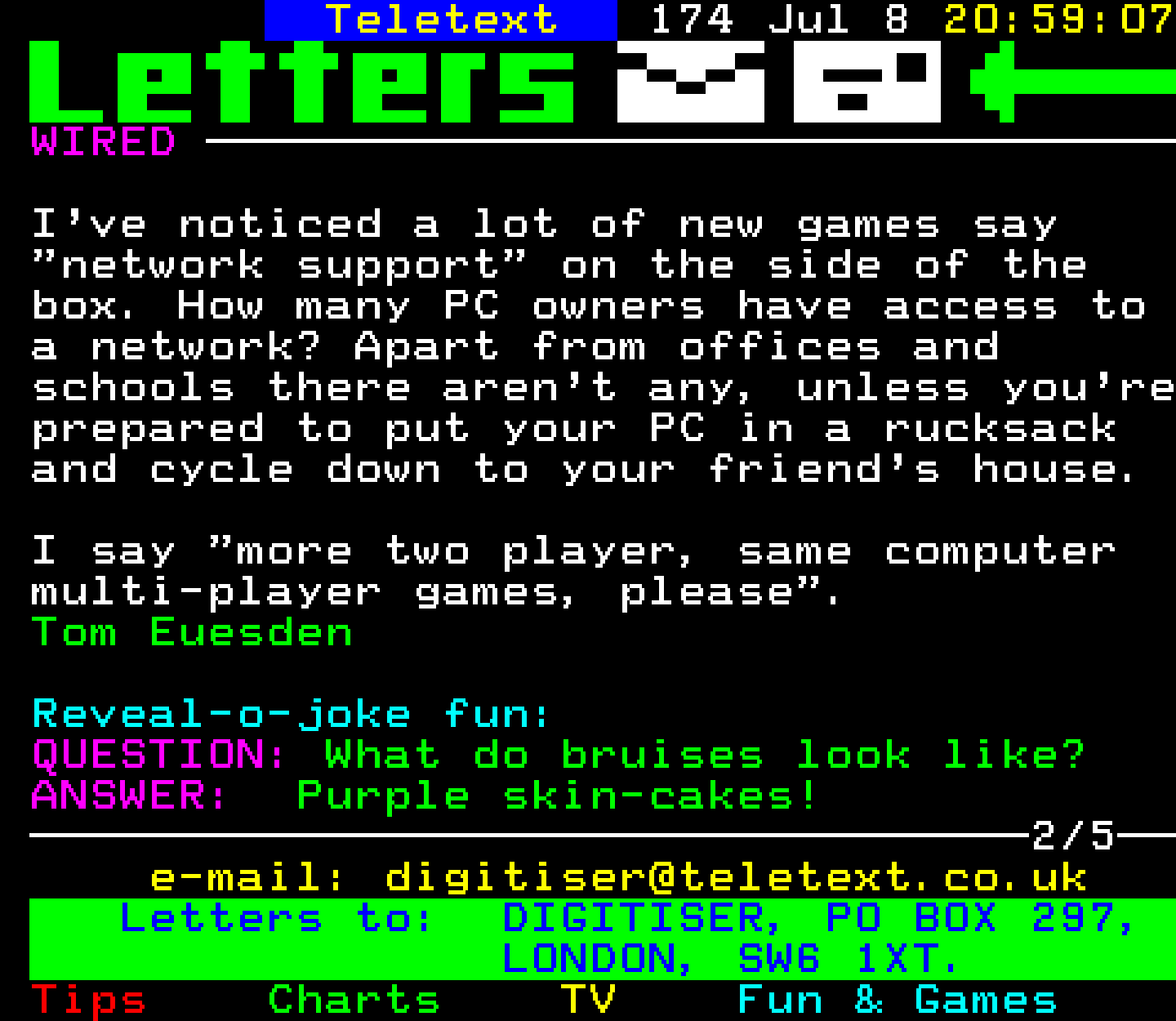 Do you have any full screenshot images of Digitiser that you'd like to see included in this archive? I'd just love to include them here - please email (superpage58@gmail.com) and the Digi community will be eternally grateful. Hey: even photos of your old TV showing the teletext page are good to be included!