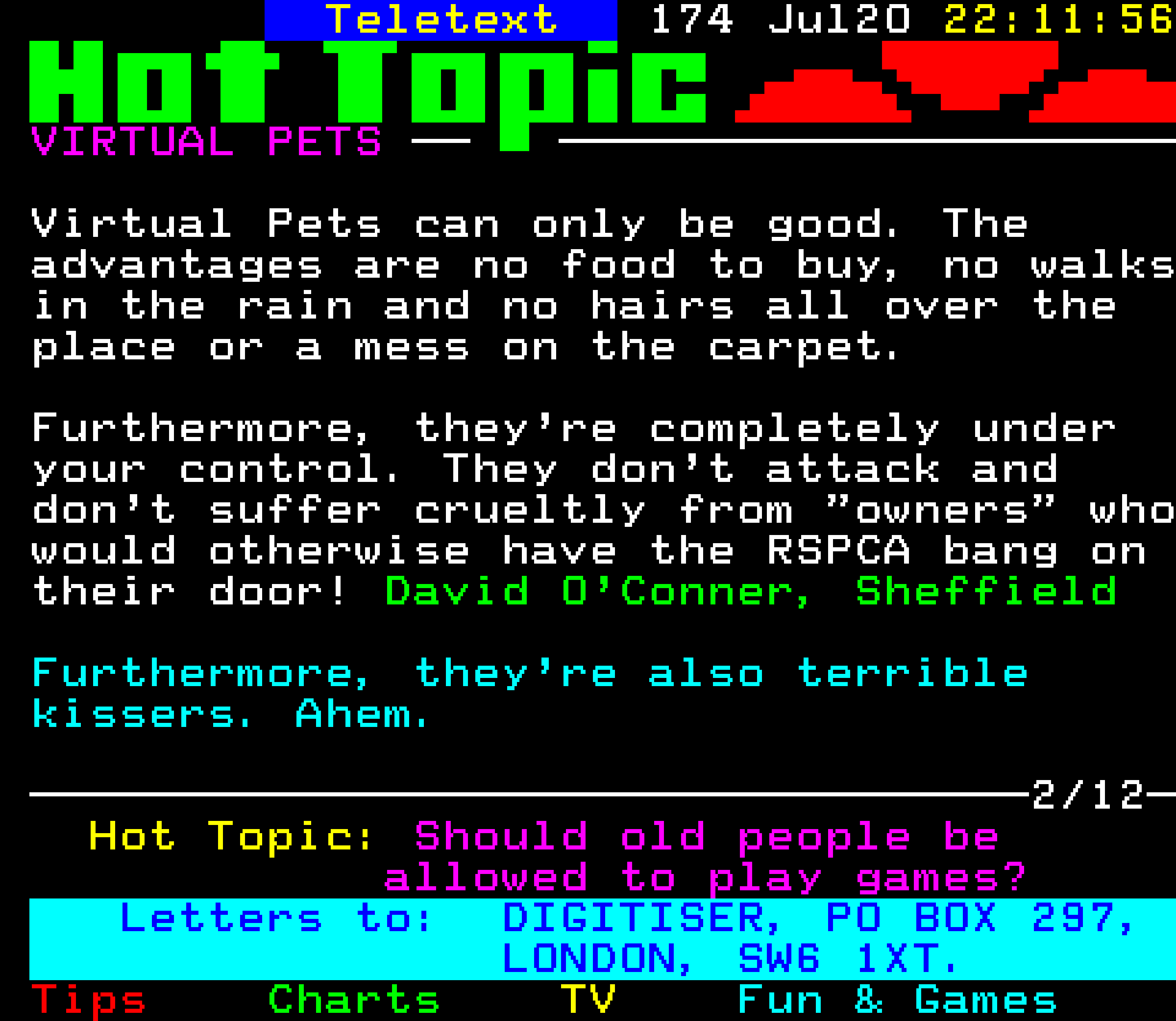 Do you have any full screenshot images of Digitiser that you'd like to see included in this archive? I'd just love to include them here - please email (superpage58@gmail.com) and the Digi community will be eternally grateful. Hey: even photos of your old TV showing the teletext page are good to be included!
