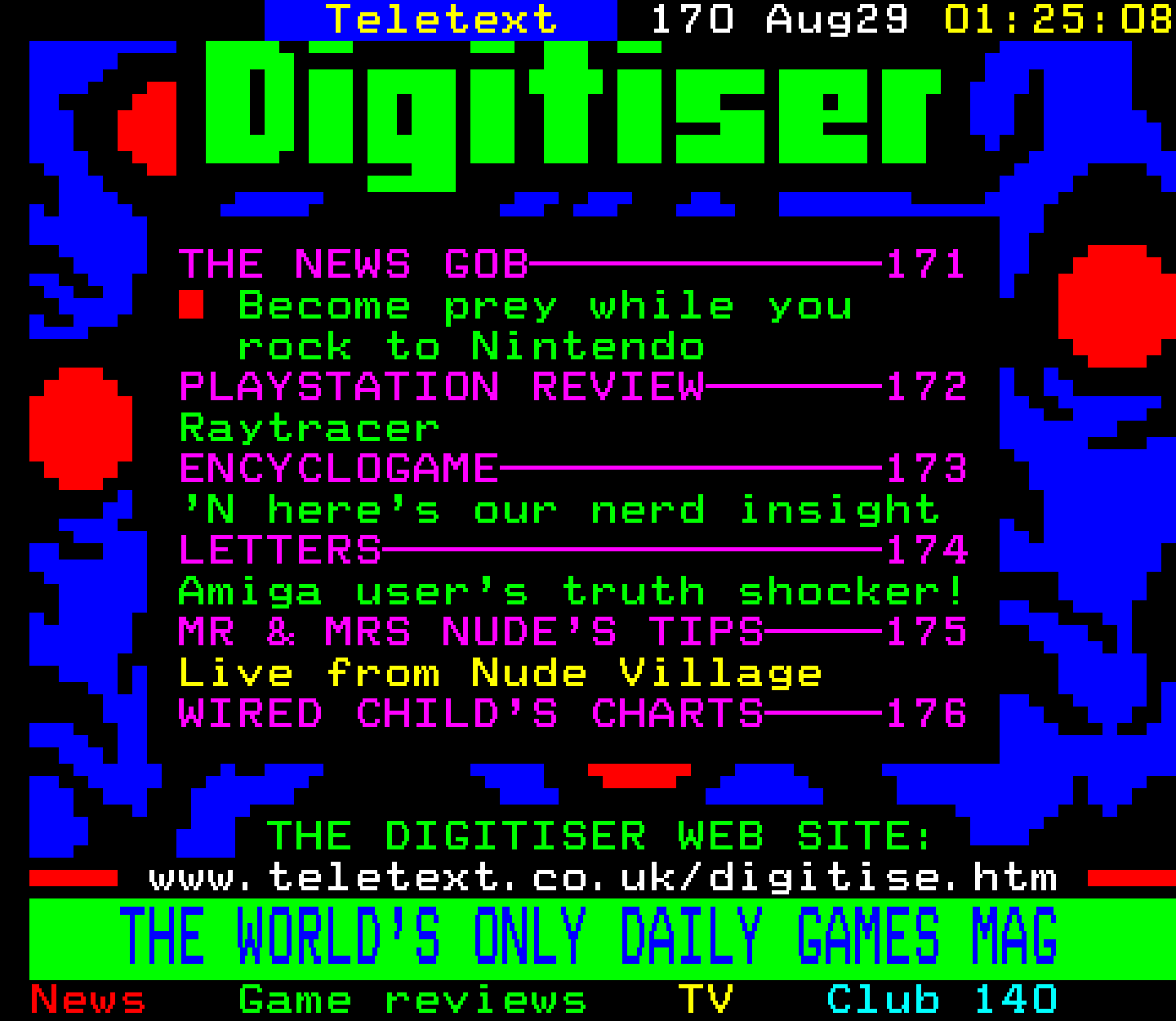 Do you have any full screenshot images of Digitiser that you'd like to see included in this archive? I'd just love to include them here - please email (superpage58@gmail.com) and the Digi community will be eternally grateful. Hey: even photos of your old TV showing the teletext page are good to be included!