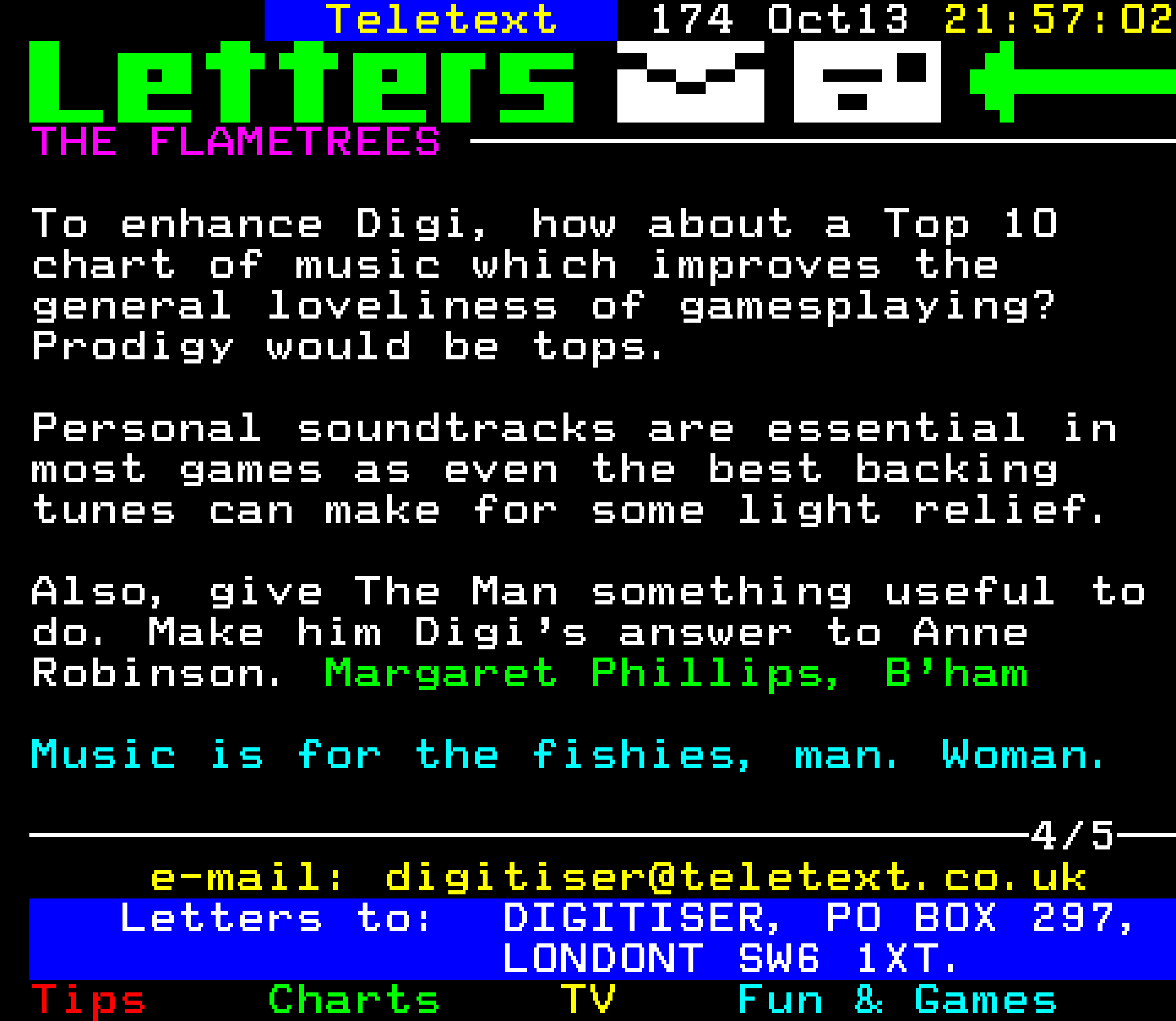 Do you have any full screenshot images of Digitiser that you'd like to see included in this archive? I'd just love to include them here - please email (superpage58@gmail.com) and the Digi community will be eternally grateful. Hey: even photos of your old TV showing the teletext page are good to be included!