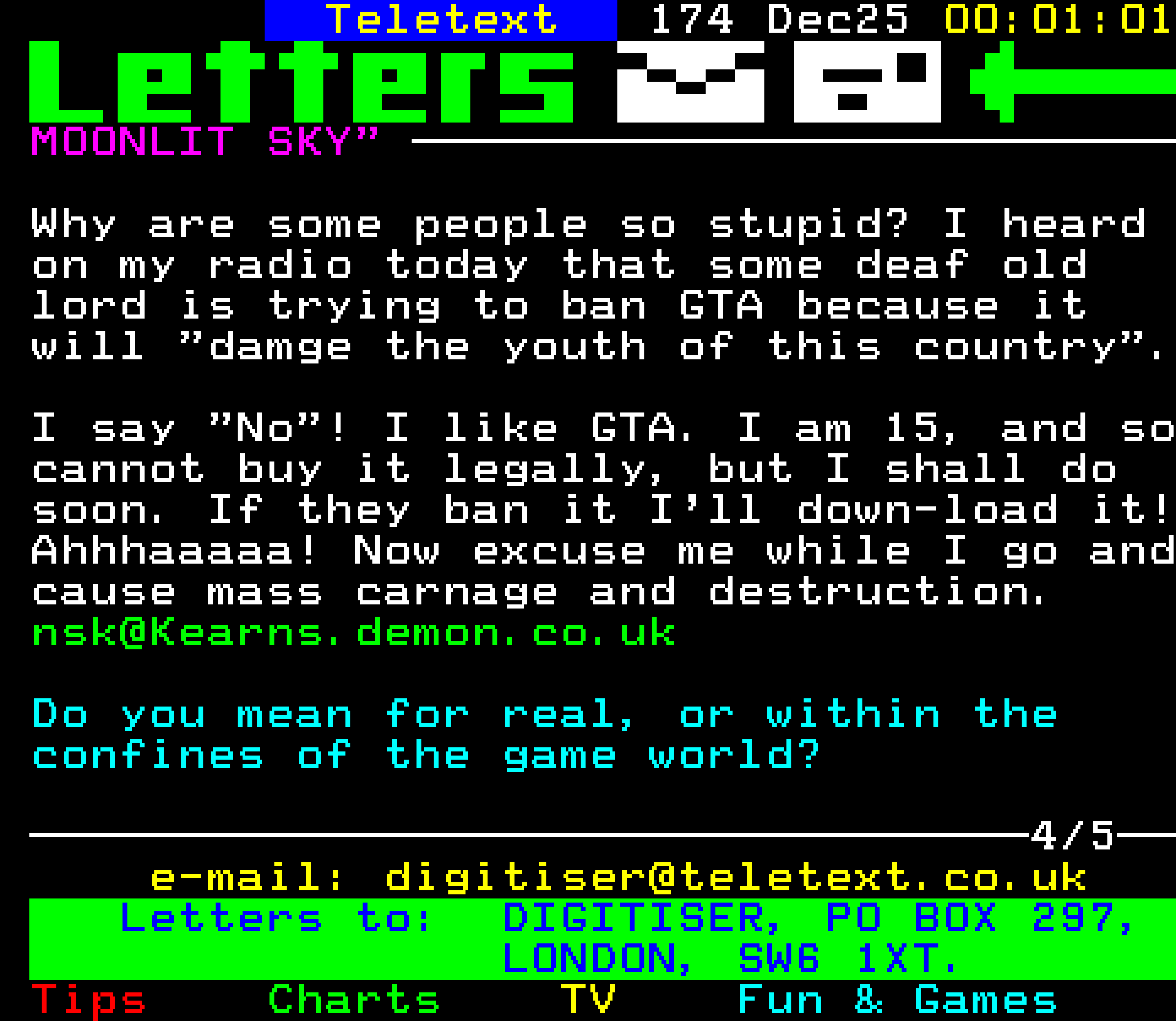 Do you have any full screenshot images of Digitiser that you'd like to see included in this archive? I'd just love to include them here - please email (superpage58@gmail.com) and the Digi community will be eternally grateful. Hey: even photos of your old TV showing the teletext page are good to be included!