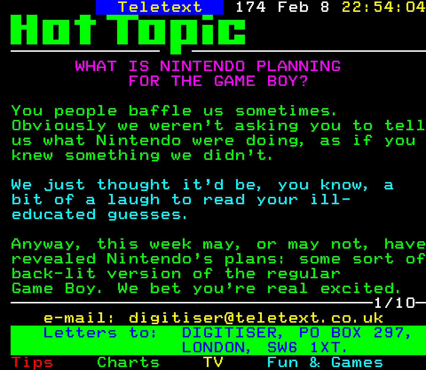 Do you have any full screenshot images of Digitiser that you'd like to see included in this archive? I'd just love to include them here - please email (superpage58@gmail.com) and the Digi community will be eternally grateful. Hey: even photos of your old TV showing the teletext page are good to be included!
