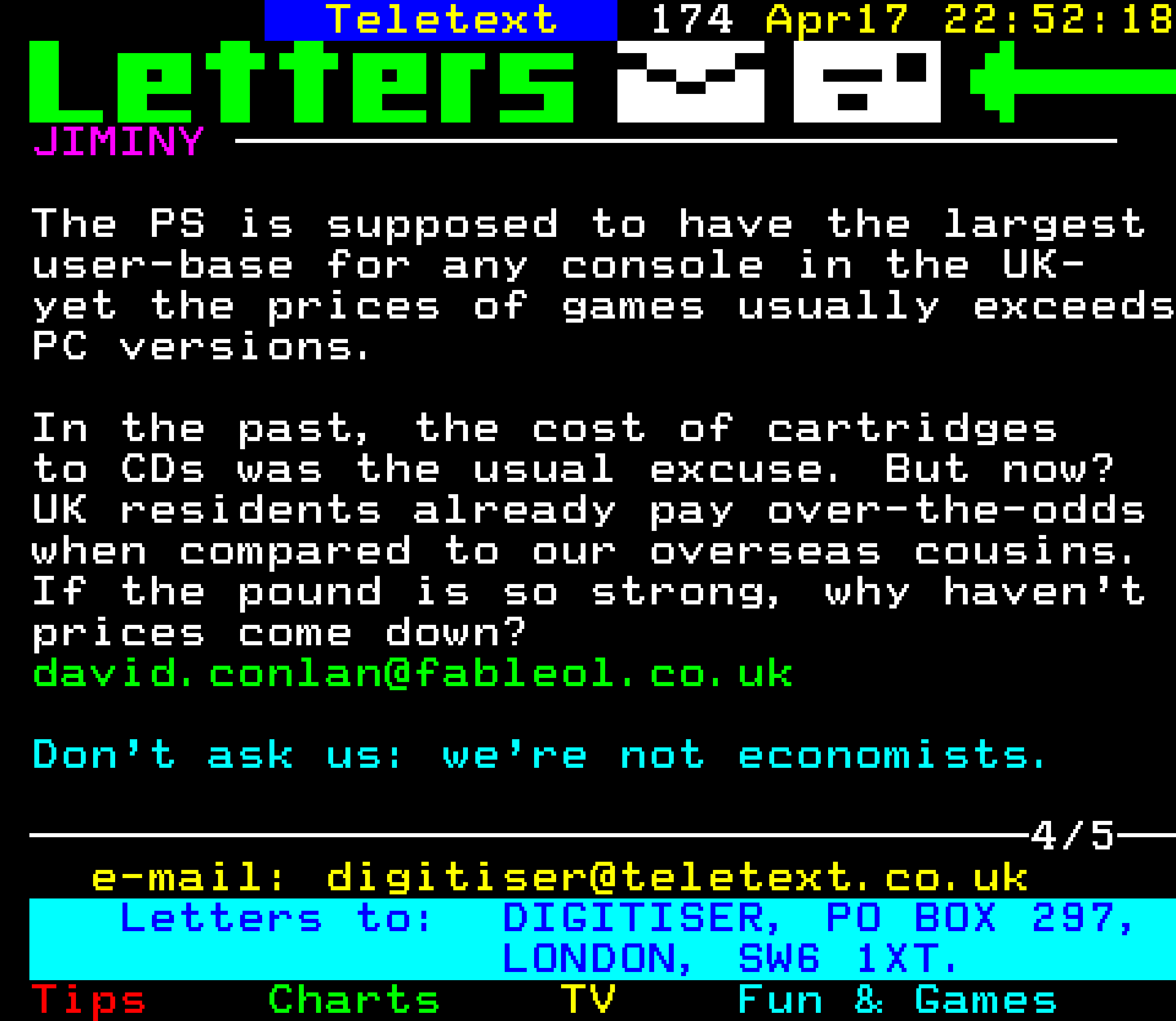 Do you have any full screenshot images of Digitiser that you'd like to see included in this archive? I'd just love to include them here - please email (superpage58@gmail.com) and the Digi community will be eternally grateful. Hey: even photos of your old TV showing the teletext page are good to be included!