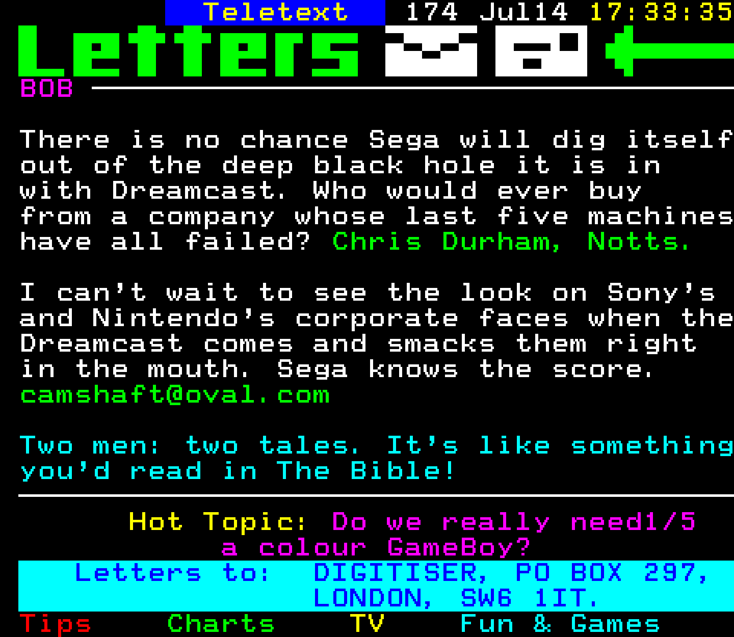 Do you have any full screenshot images of Digitiser that you'd like to see included in this archive? I'd just love to include them here - please email (superpage58@gmail.com) and the Digi community will be eternally grateful. Hey: even photos of your old TV showing the teletext page are good to be included!