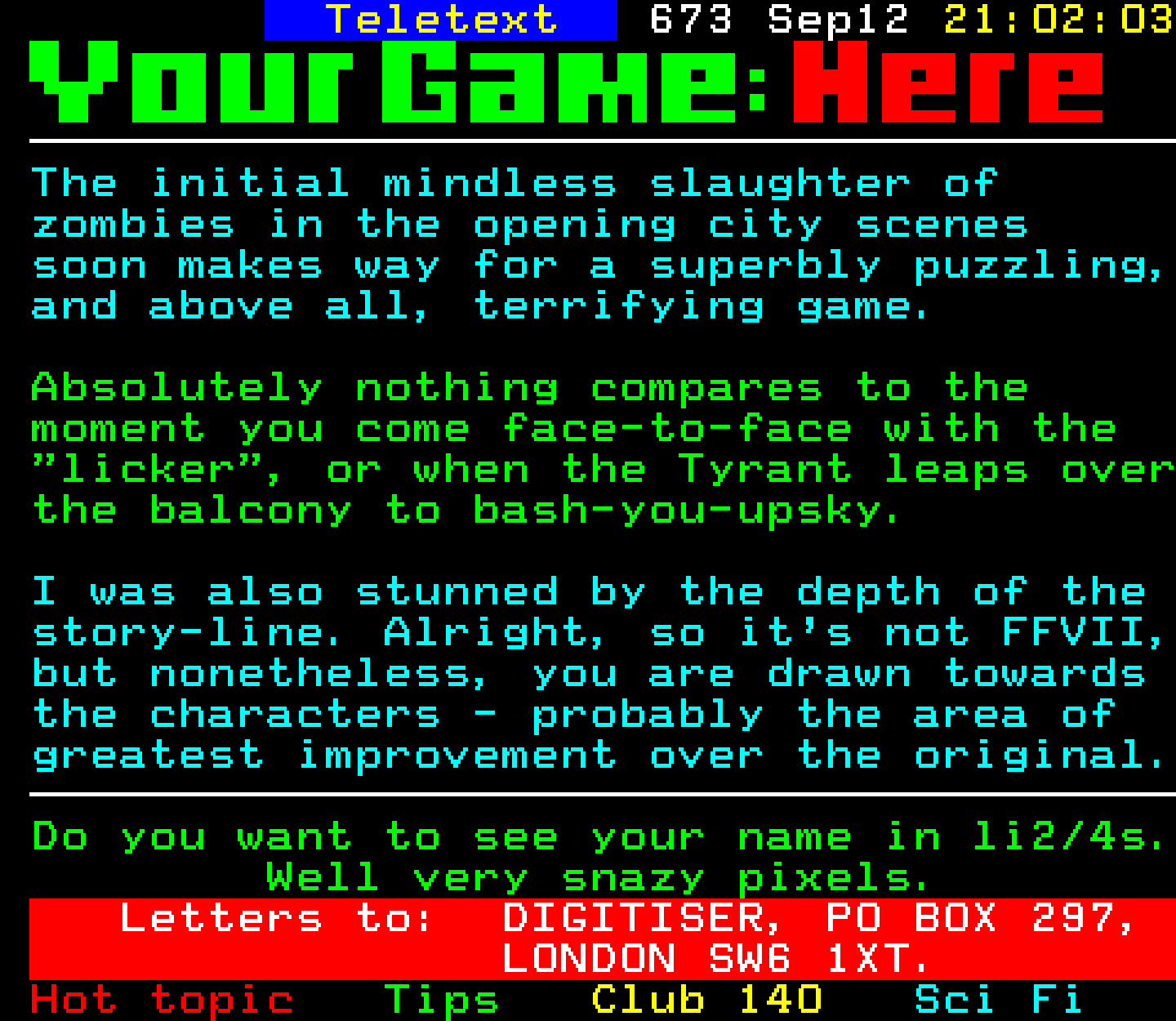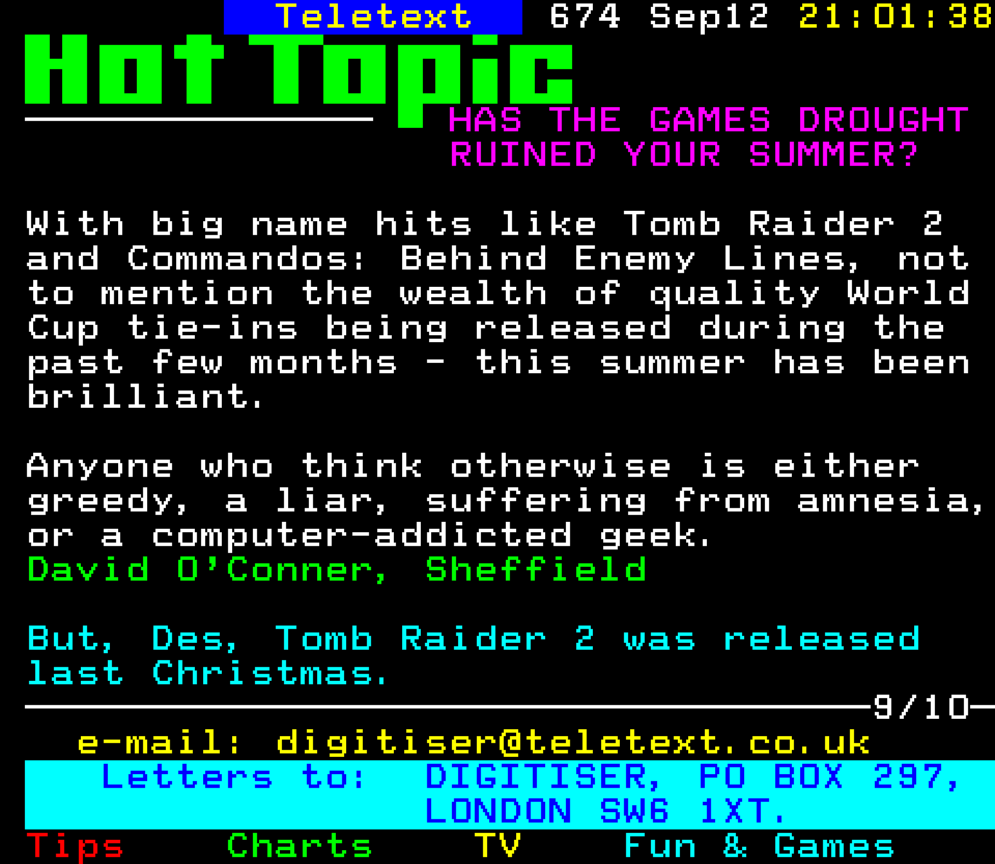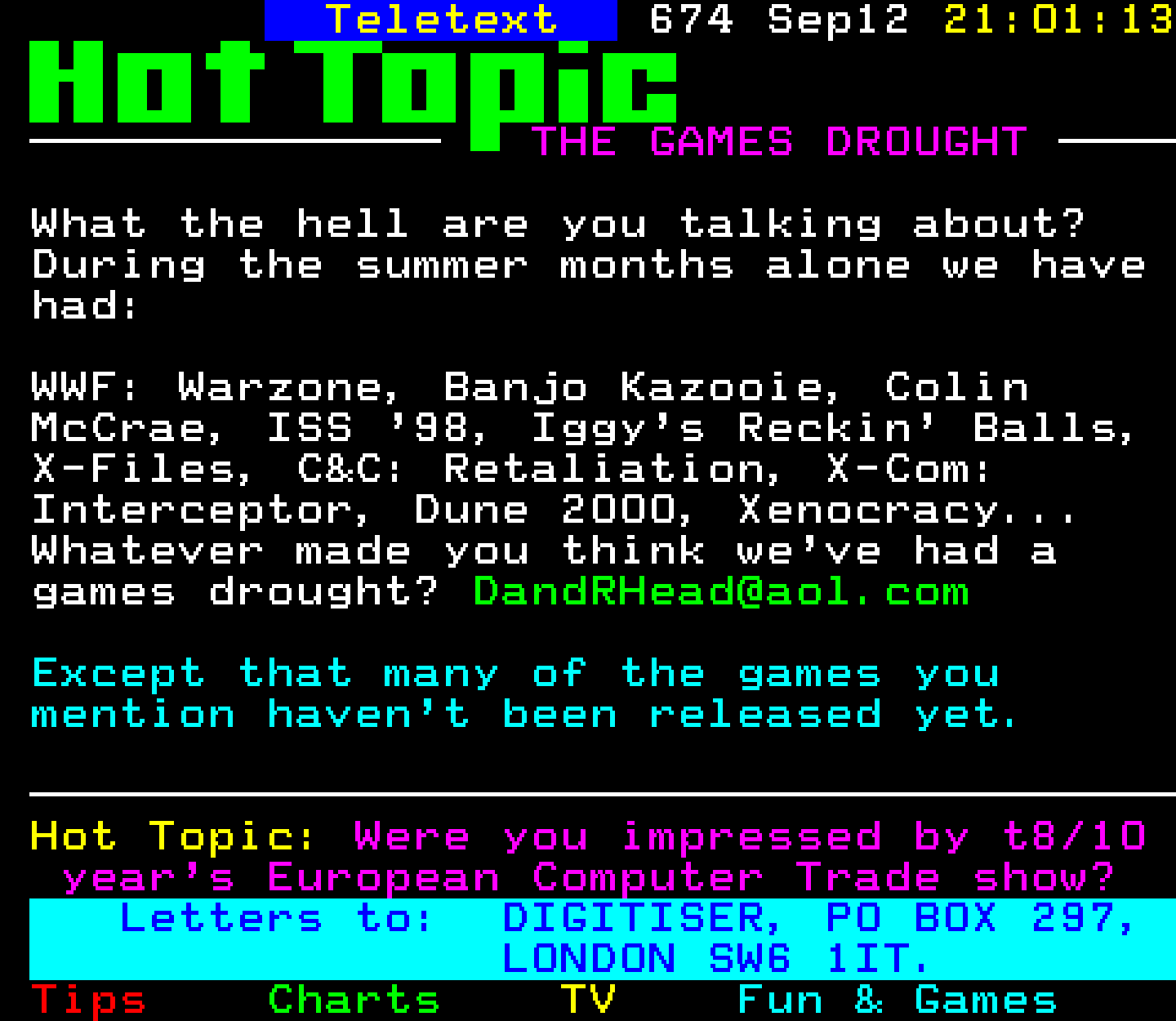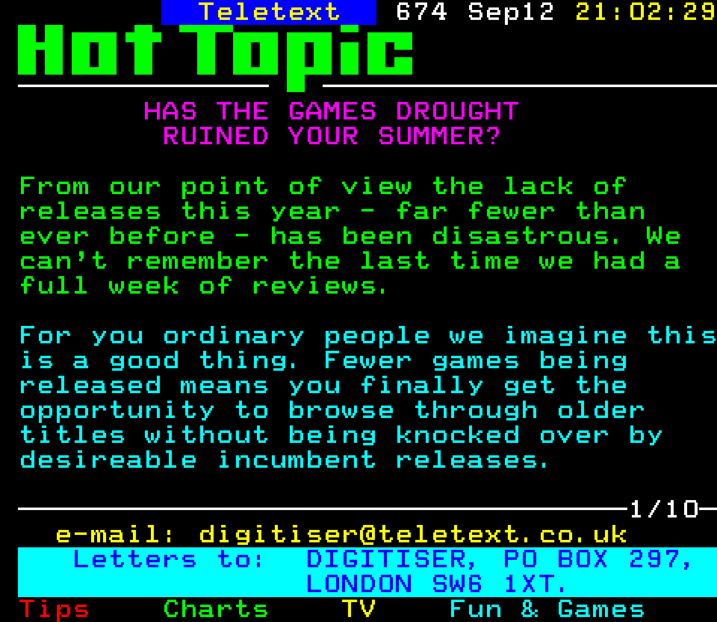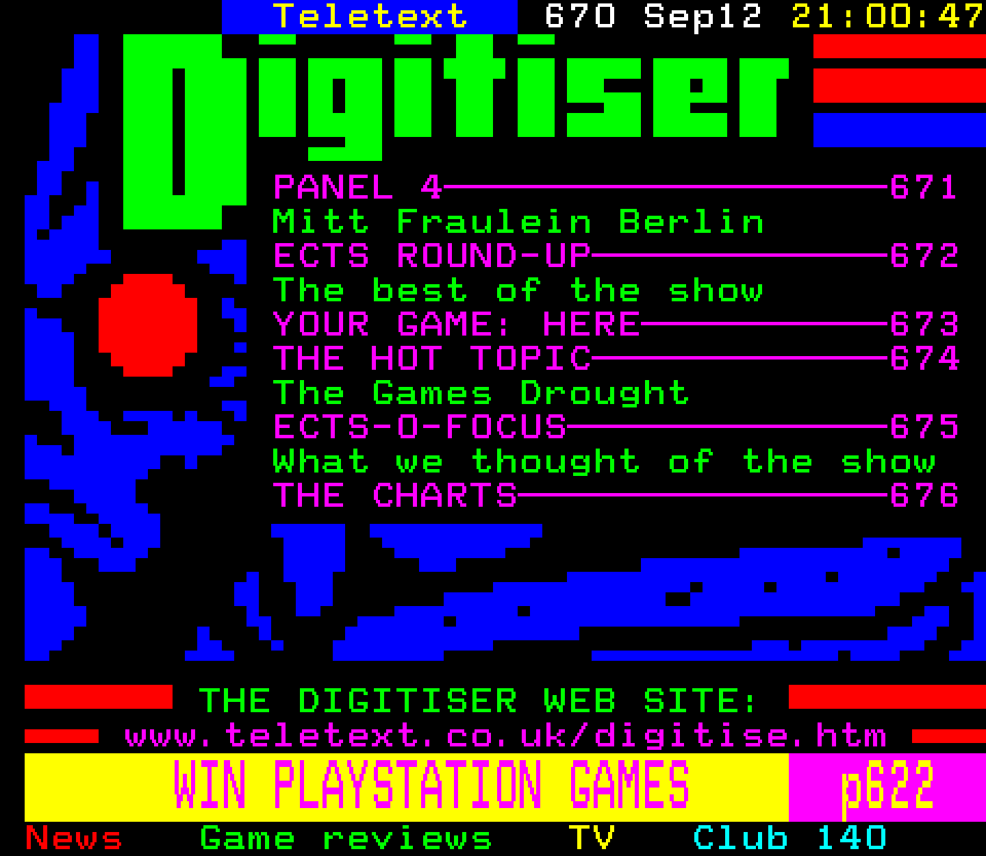 Do you have any full screenshot images of Digitiser that you'd like to see included in this archive? I'd just love to include them here - please email (superpage58@gmail.com) and the Digi community will be eternally grateful. Hey: even photos of your old TV showing the teletext page are good to be included!