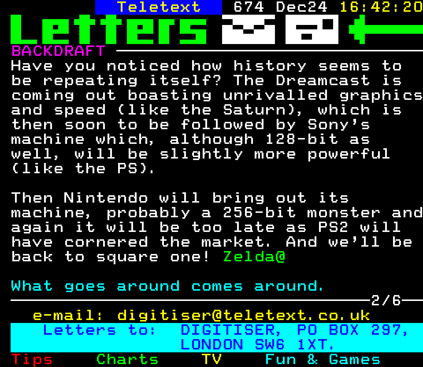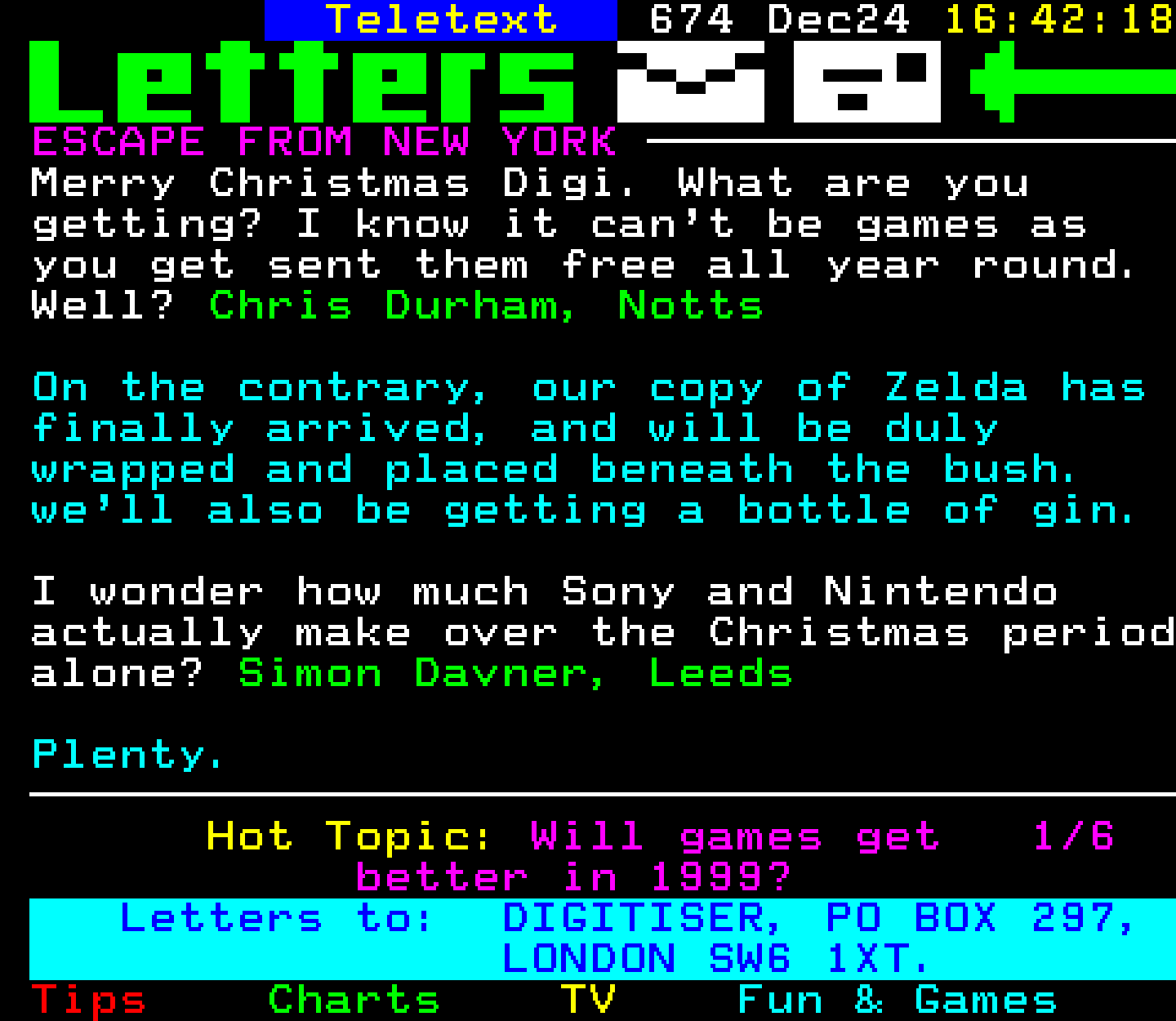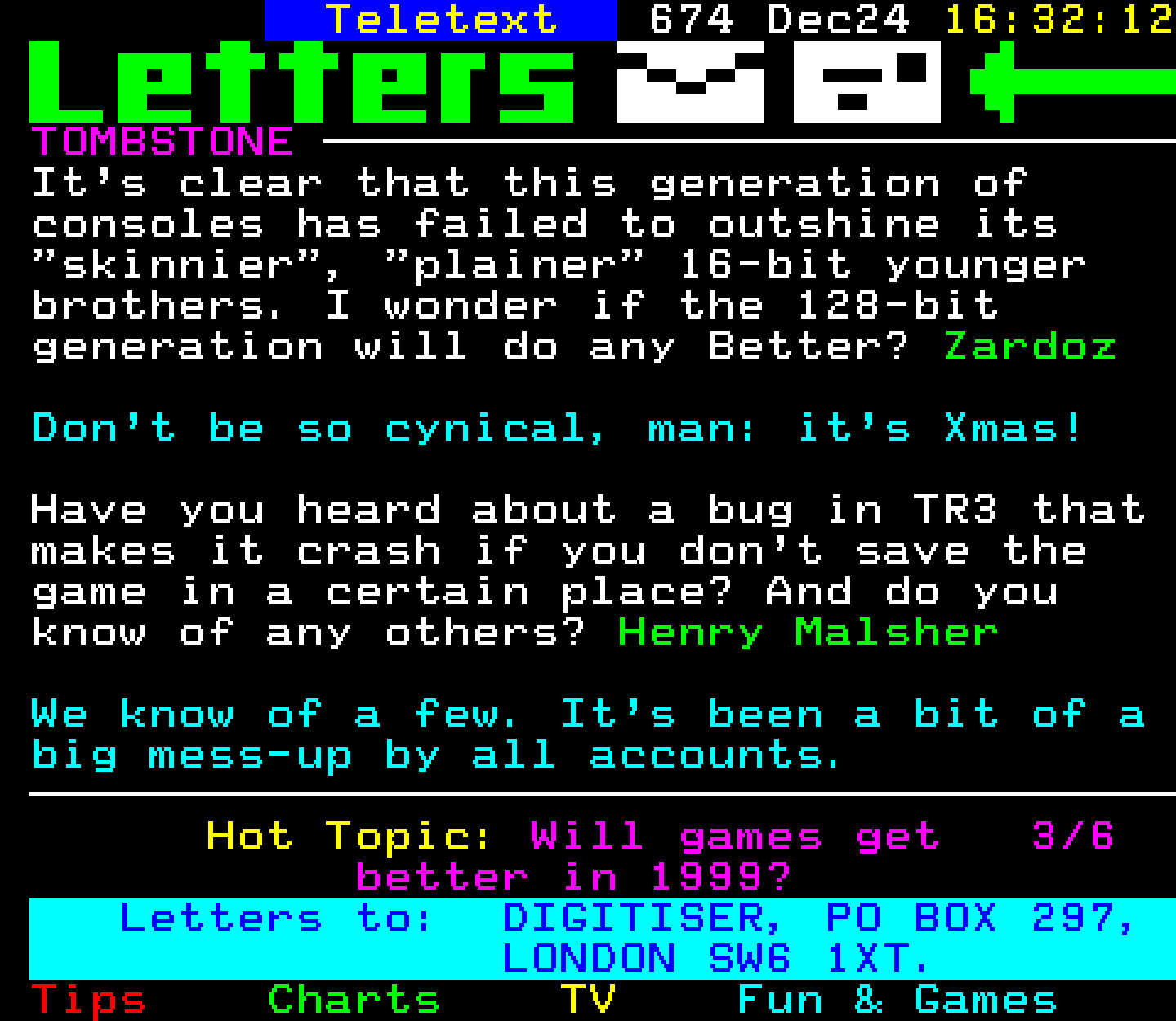 Do you have any full screenshot images of Digitiser that you'd like to see included in this archive? I'd just love to include them here - please email (superpage58@gmail.com) and the Digi community will be eternally grateful. Hey: even photos of your old TV showing the teletext page are good to be included!