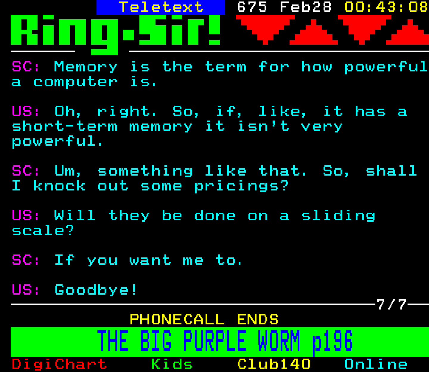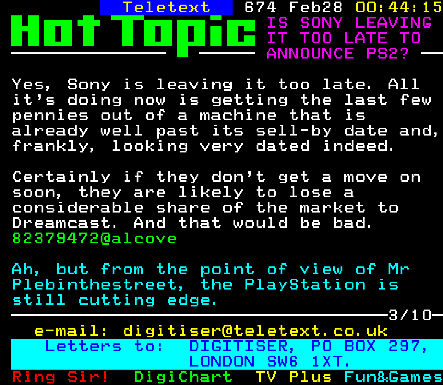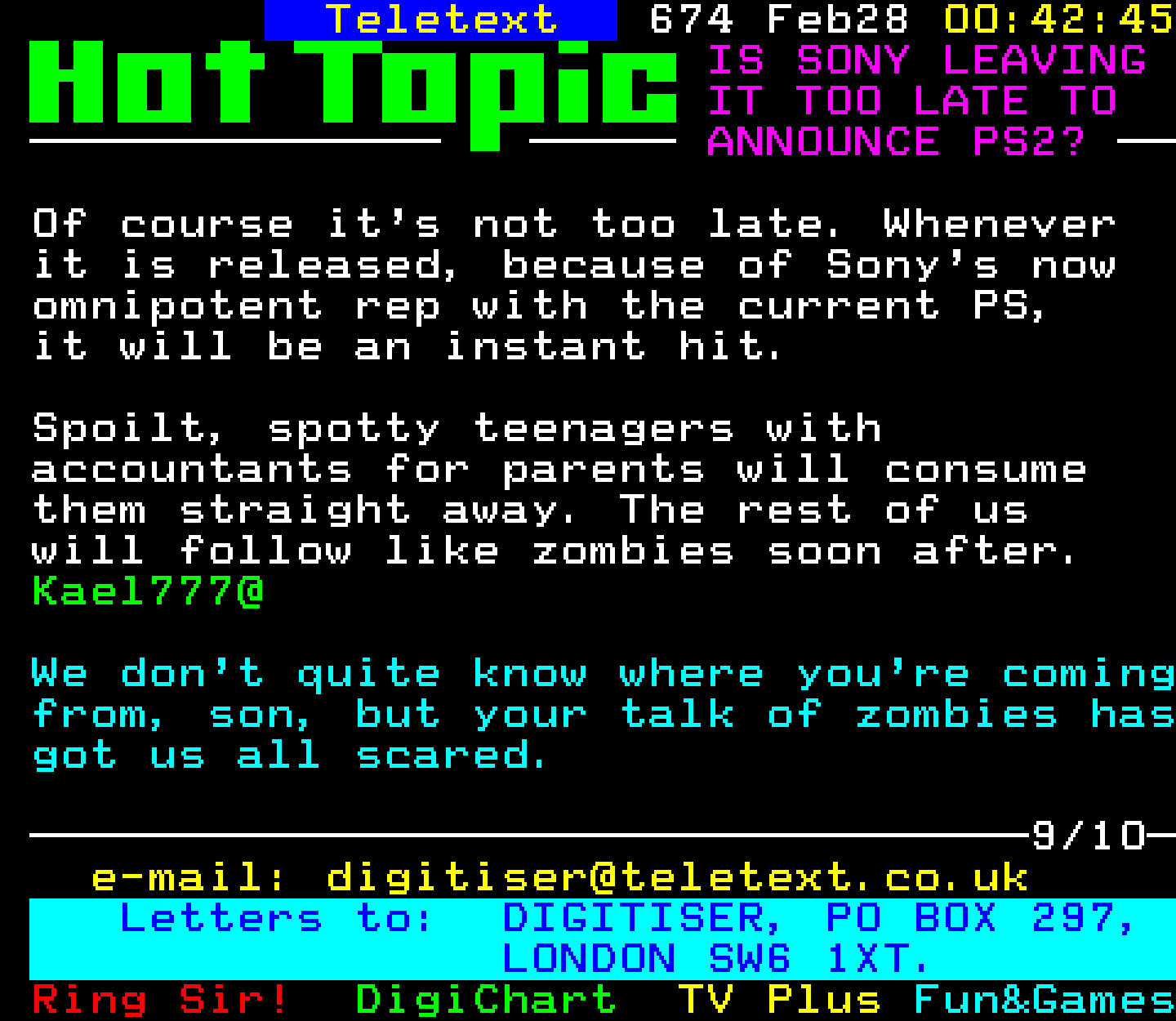 Do you have any full screenshot images of Digitiser that you'd like to see included in this archive? I'd just love to include them here - please email (superpage58@gmail.com) and the Digi community will be eternally grateful. Hey: even photos of your old TV showing the teletext page are good to be included!