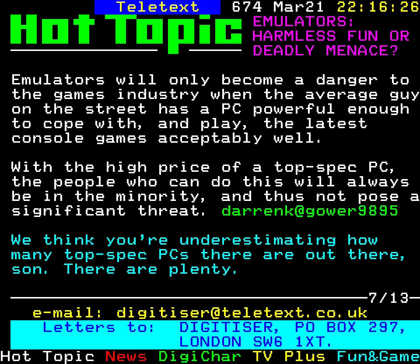 Do you have any full screenshot images of Digitiser that you'd like to see included in this archive? I'd just love to include them here - please email (superpage58@gmail.com) and the Digi community will be eternally grateful. Hey: even photos of your old TV showing the teletext page are good to be included!