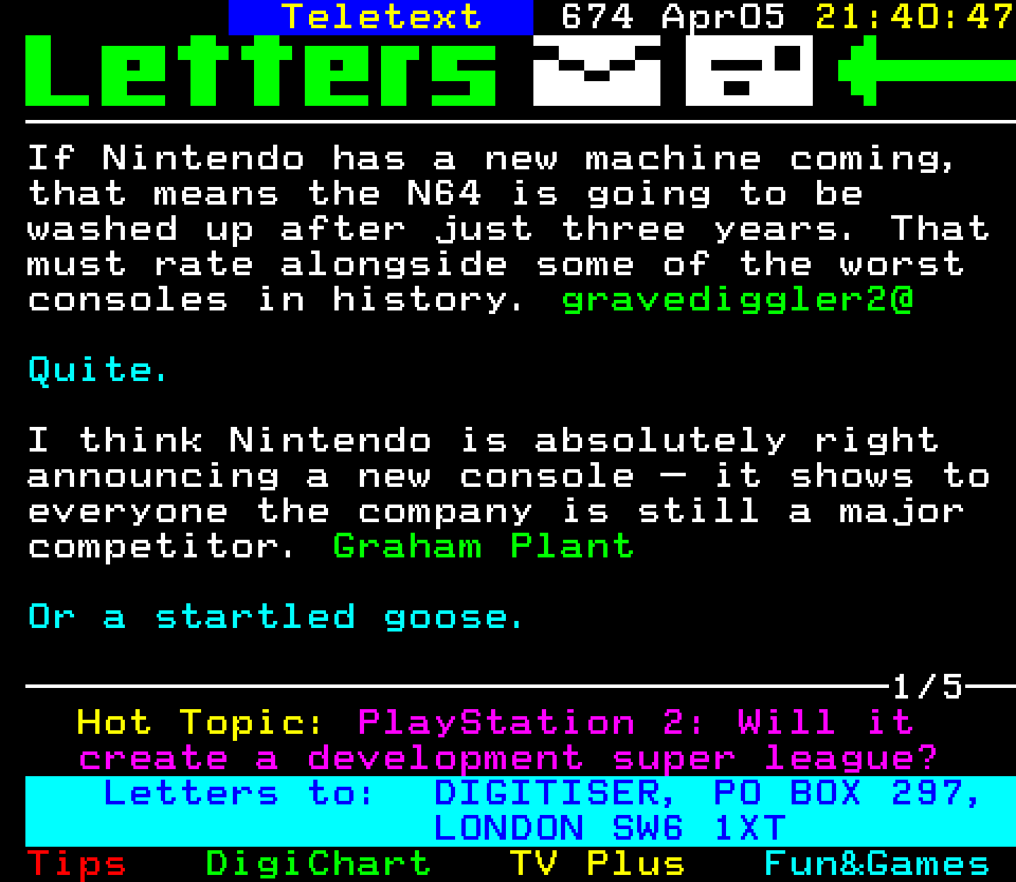Do you have any full screenshot images of Digitiser that you'd like to see included in this archive? I'd just love to include them here - please email (superpage58@gmail.com) and the Digi community will be eternally grateful. Hey: even photos of your old TV showing the teletext page are good to be included!
