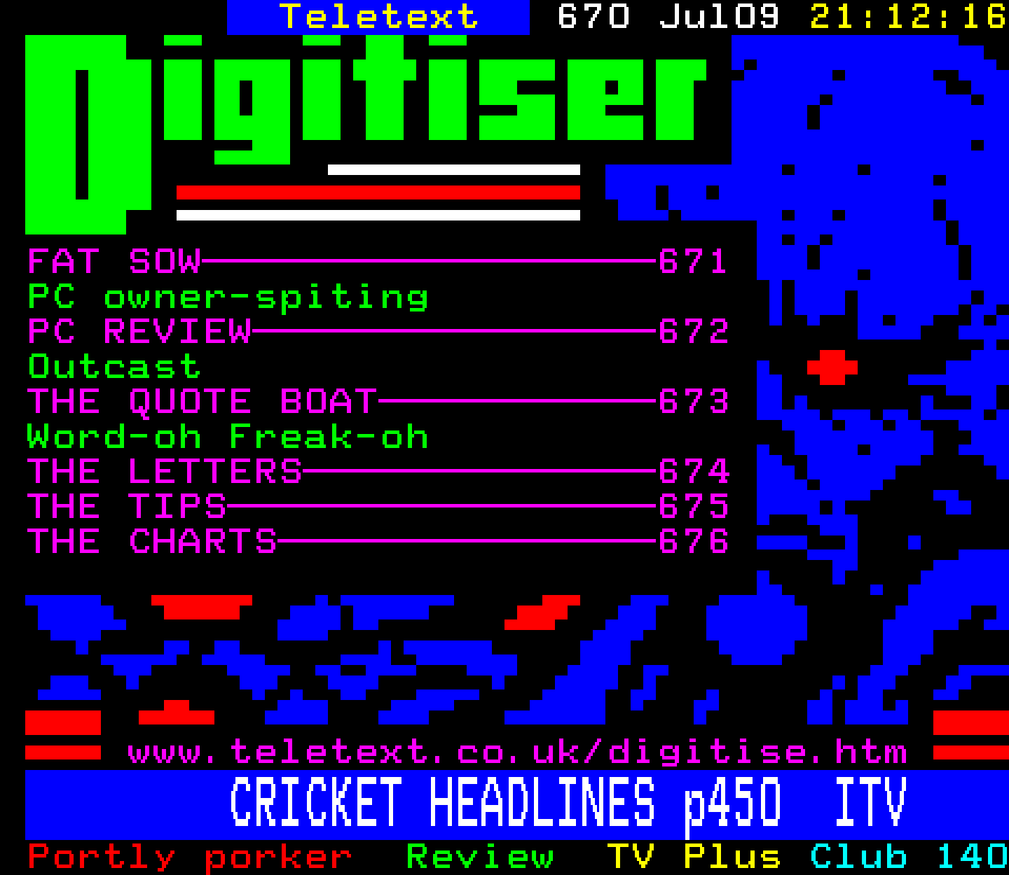 Do you have any full screenshot images of Digitiser that you'd like to see included in this archive? I'd just love to include them here - please email (superpage58@gmail.com) and the Digi community will be eternally grateful. Hey: even photos of your old TV showing the teletext page are good to be included!