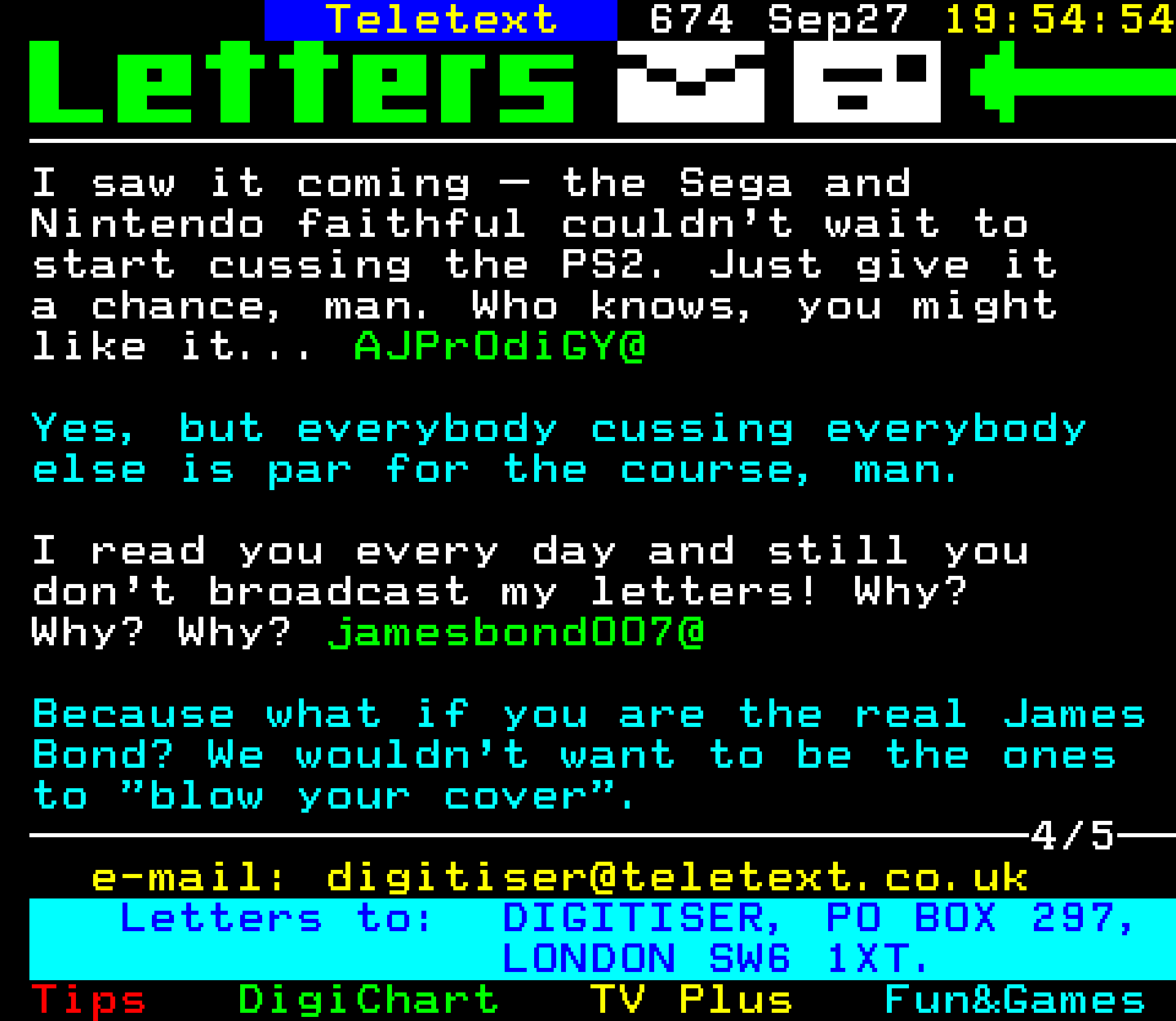 Do you have any full screenshot images of Digitiser that you'd like to see included in this archive? I'd just love to include them here - please email (superpage58@gmail.com) and the Digi community will be eternally grateful. Hey: even photos of your old TV showing the teletext page are good to be included!