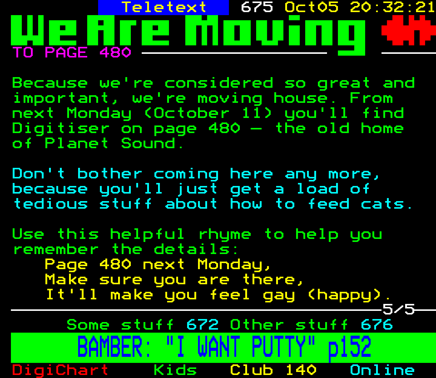 Do you have any full screenshot images of Digitiser that you'd like to see included in this archive? I'd just love to include them here - please email (superpage58@gmail.com) and the Digi community will be eternally grateful. Hey: even photos of your old TV showing the teletext page are good to be included!