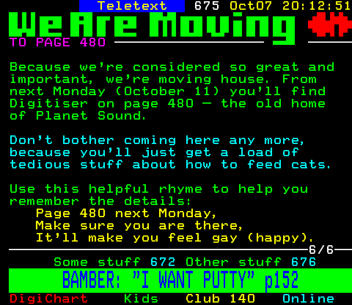 Do you have any full screenshot images of Digitiser that you'd like to see included in this archive? I'd just love to include them here - please email (superpage58@gmail.com) and the Digi community will be eternally grateful. Hey: even photos of your old TV showing the teletext page are good to be included!