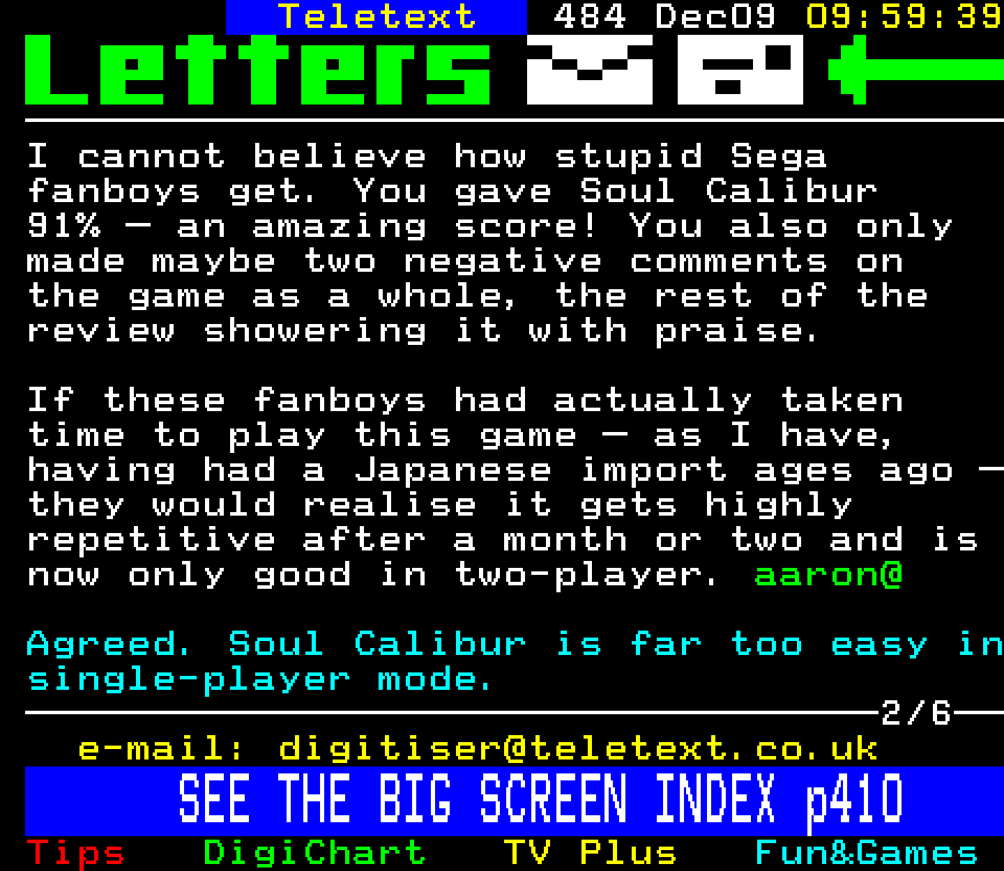 Do you have any full screenshot images of Digitiser that you'd like to see included in this archive? I'd just love to include them here - please email (superpage58@gmail.com) and the Digi community will be eternally grateful. Hey: even photos of your old TV showing the teletext page are good to be included!