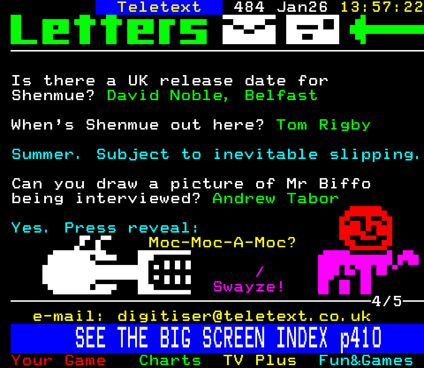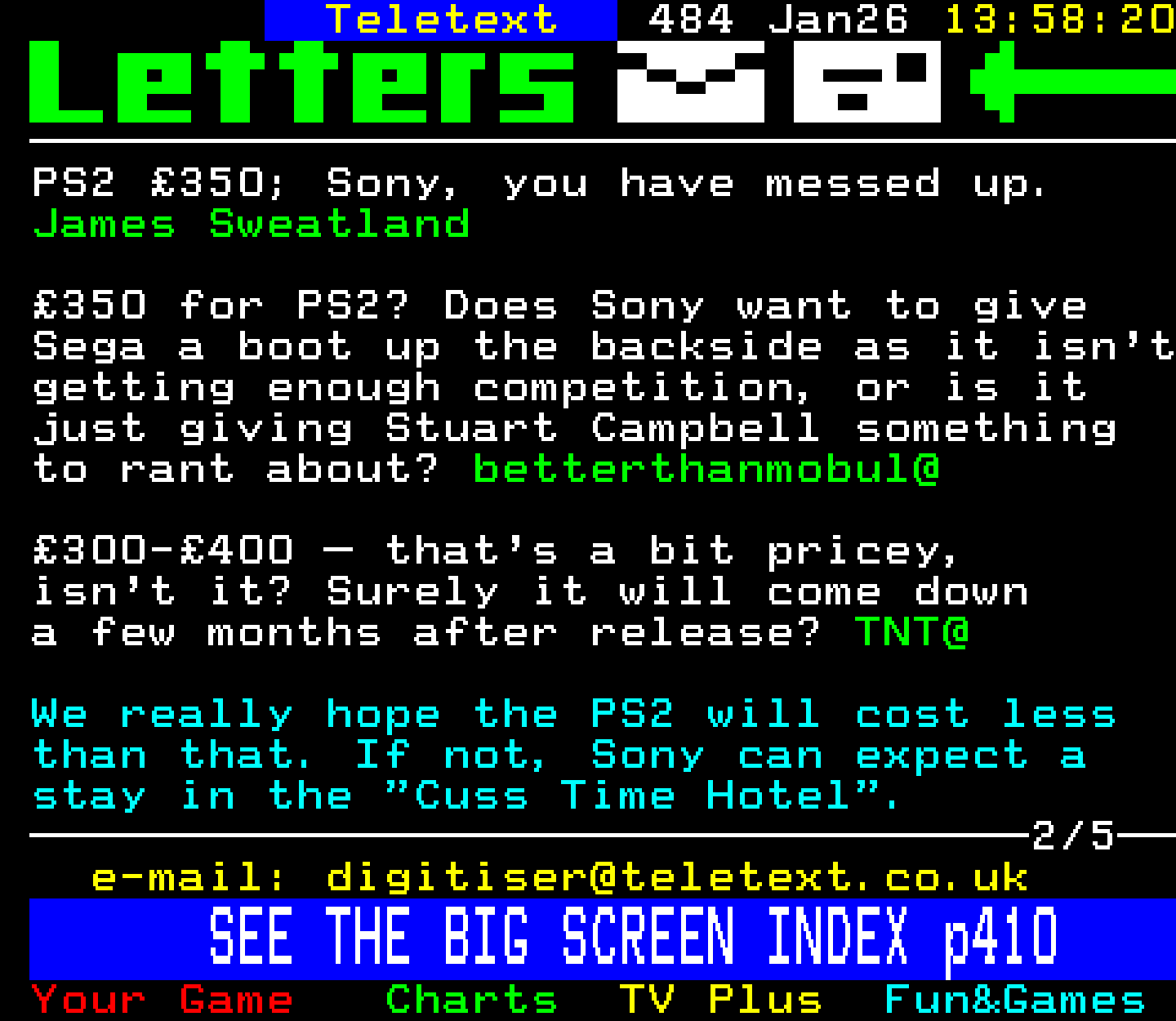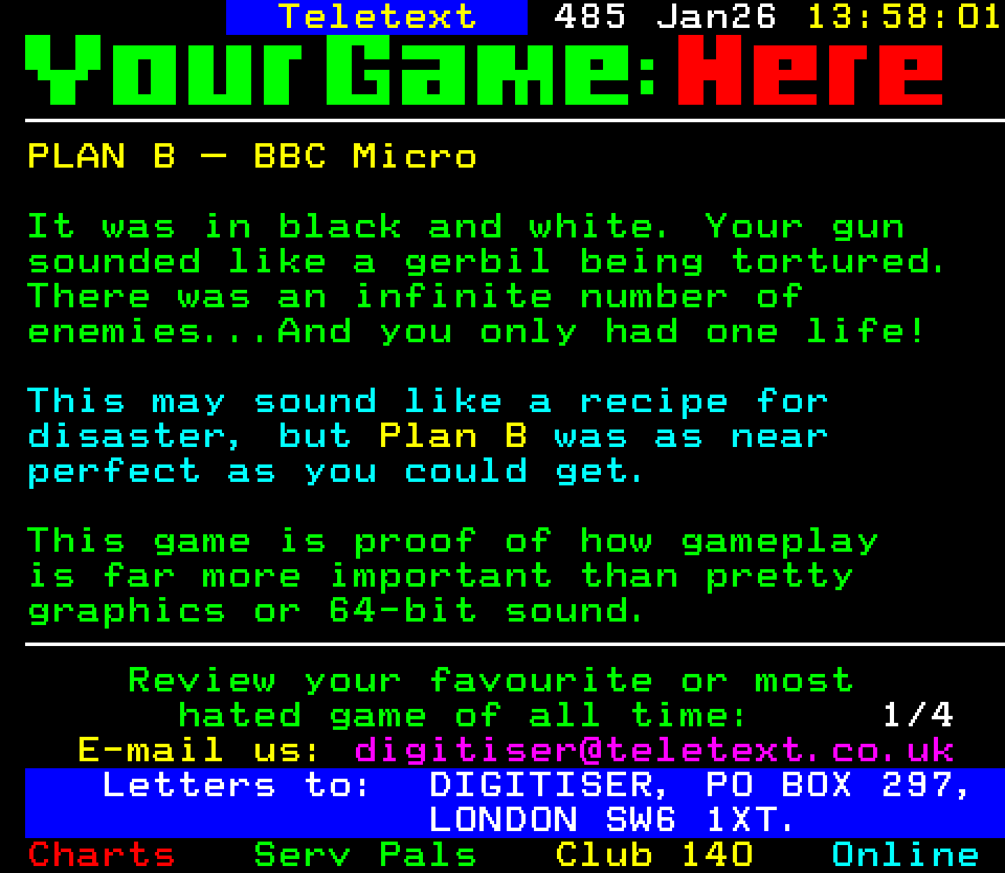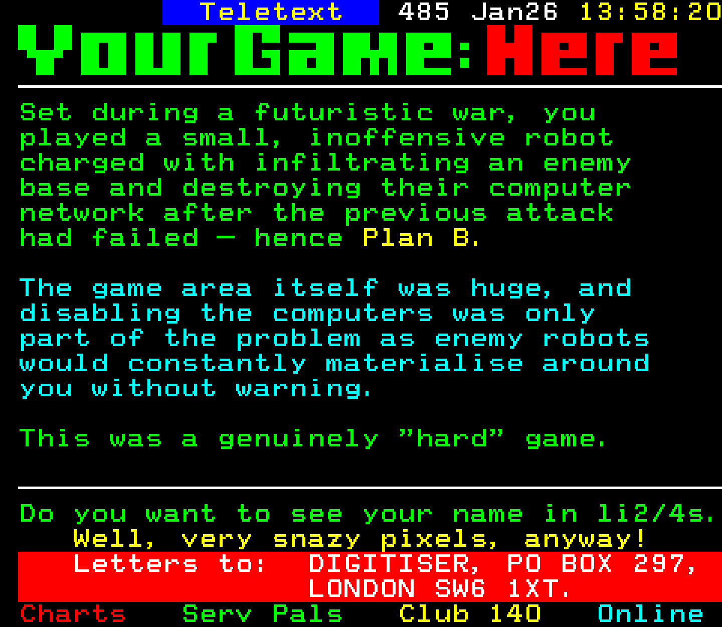 Do you have any full screenshot images of Digitiser that you'd like to see included in this archive? I'd just love to include them here - please email (superpage58@gmail.com) and the Digi community will be eternally grateful. Hey: even photos of your old TV showing the teletext page are good to be included!