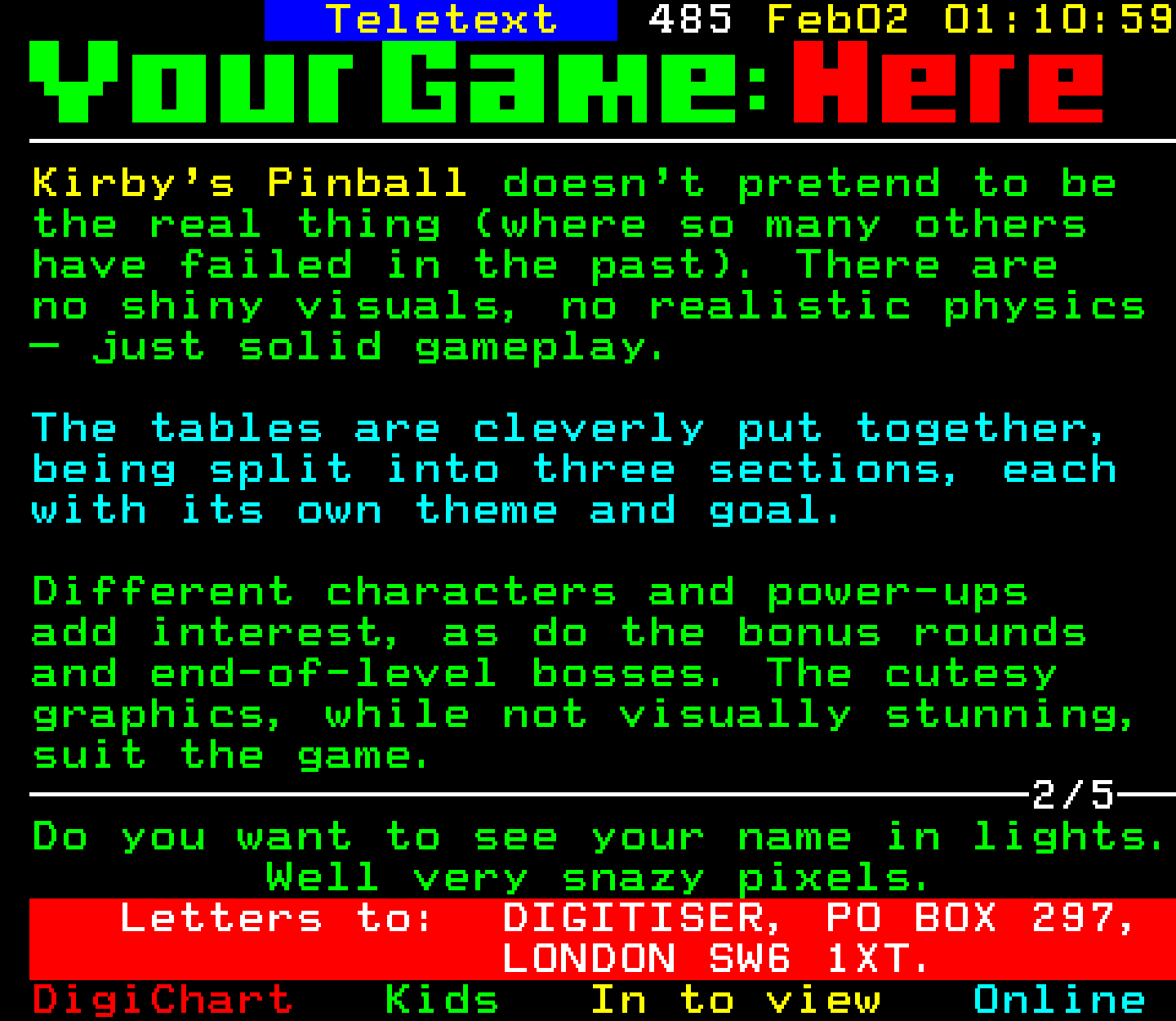 Do you have any full screenshot images of Digitiser that you'd like to see included in this archive? I'd just love to include them here - please email (superpage58@gmail.com) and the Digi community will be eternally grateful. Hey: even photos of your old TV showing the teletext page are good to be included!