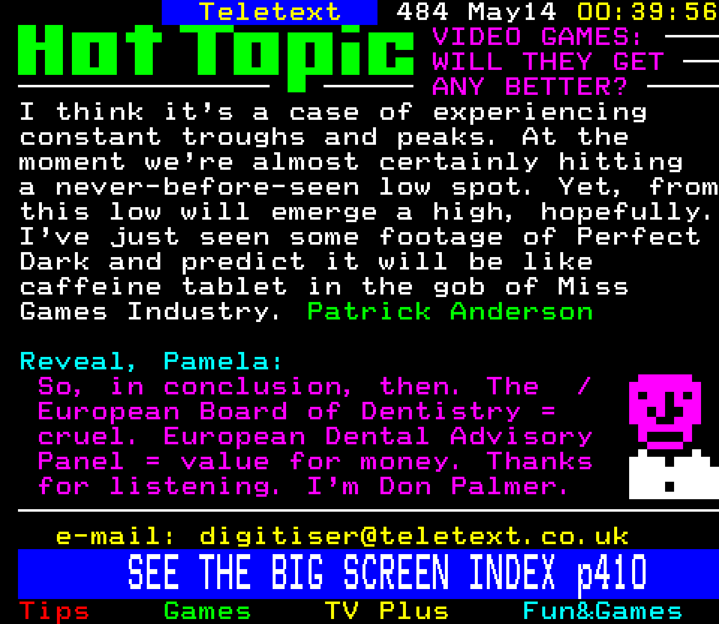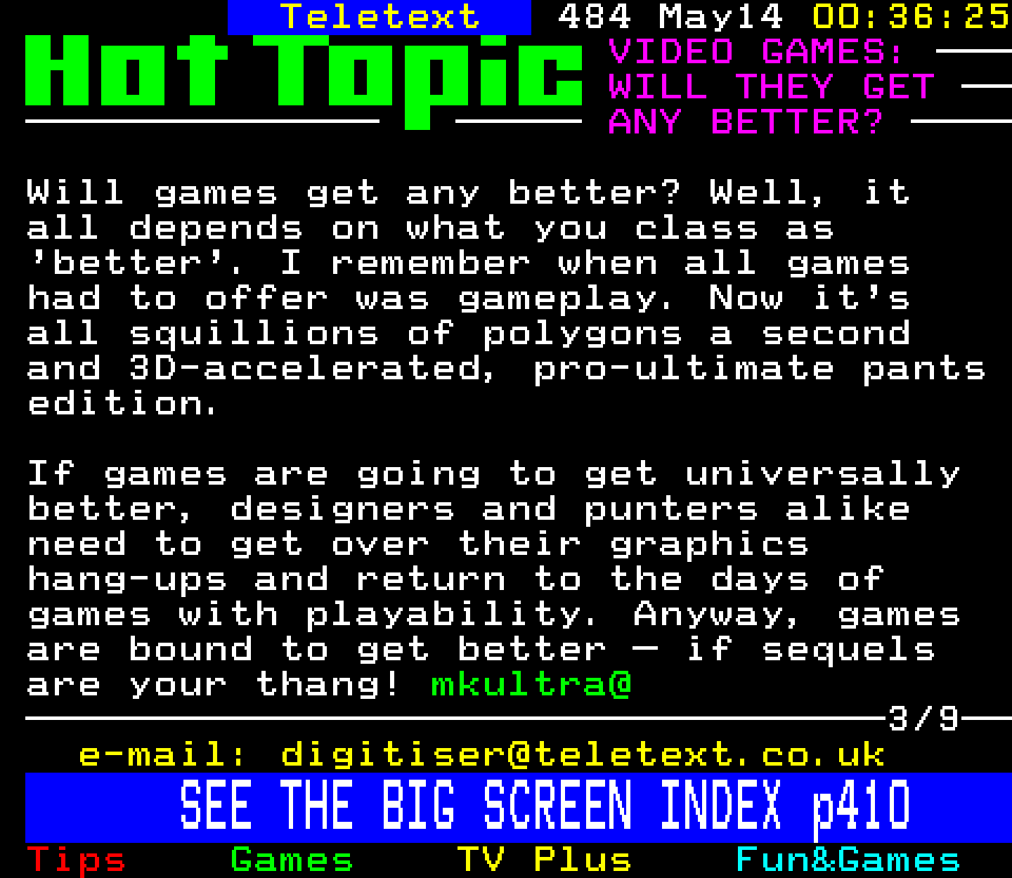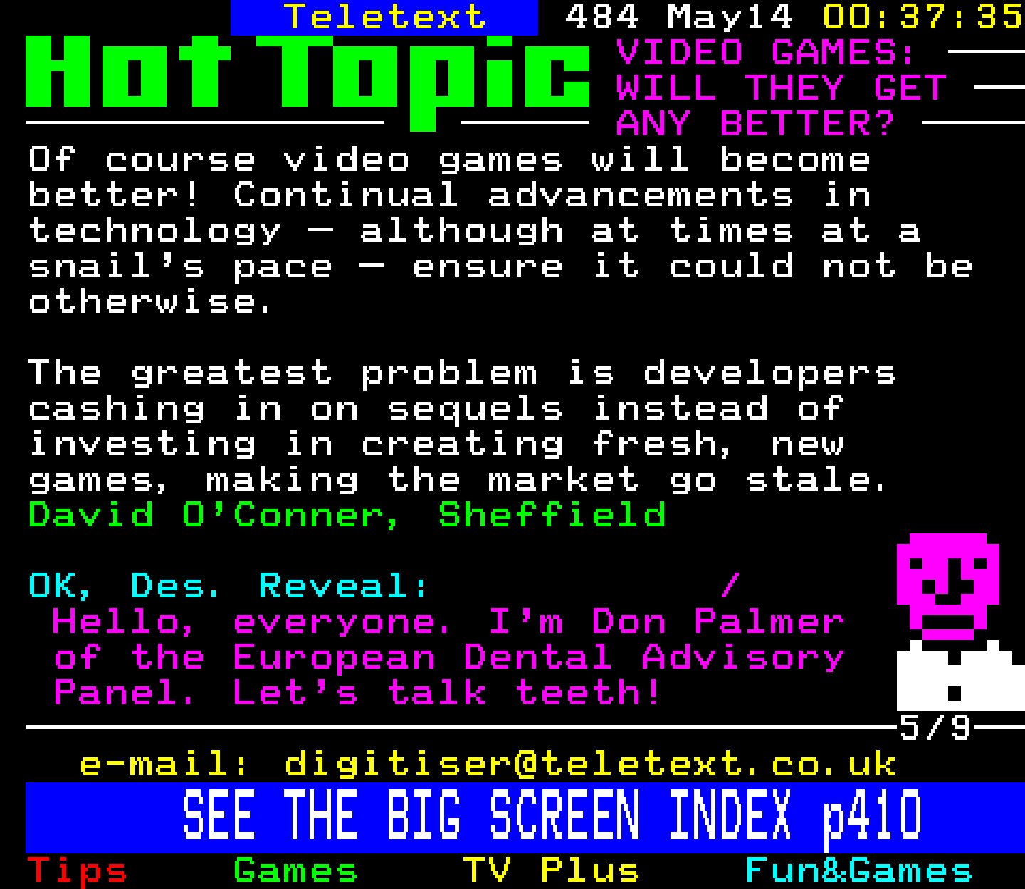 Do you have any full screenshot images of Digitiser that you'd like to see included in this archive? I'd just love to include them here - please email (superpage58@gmail.com) and the Digi community will be eternally grateful. Hey: even photos of your old TV showing the teletext page are good to be included!