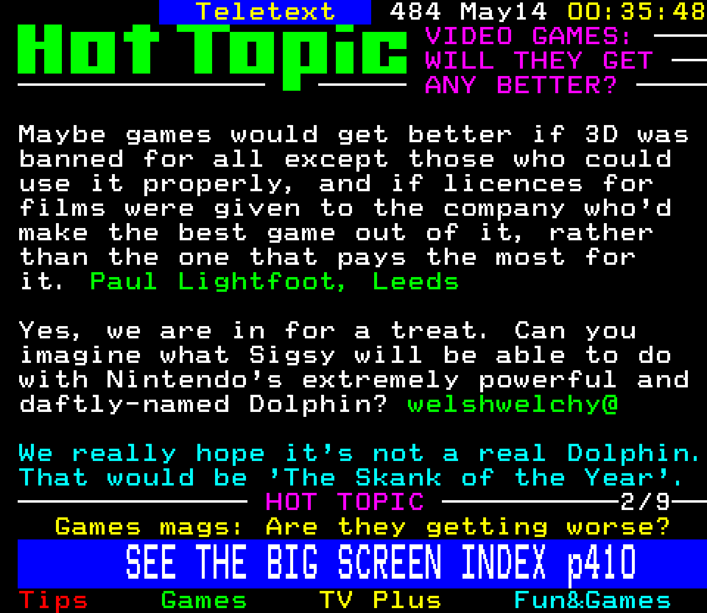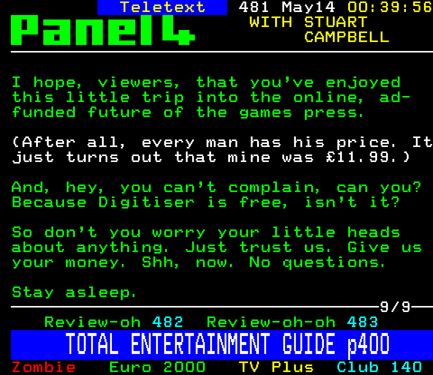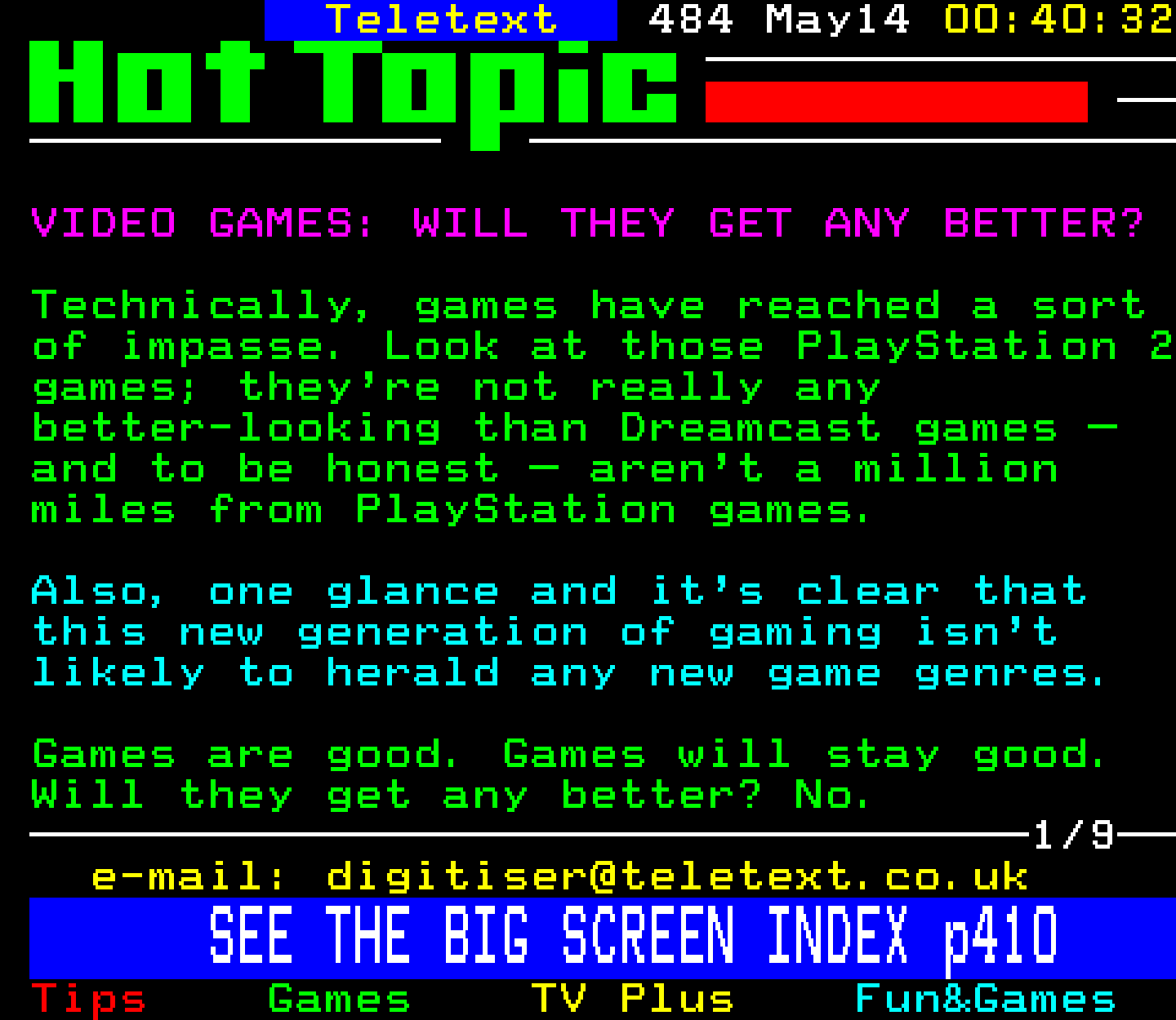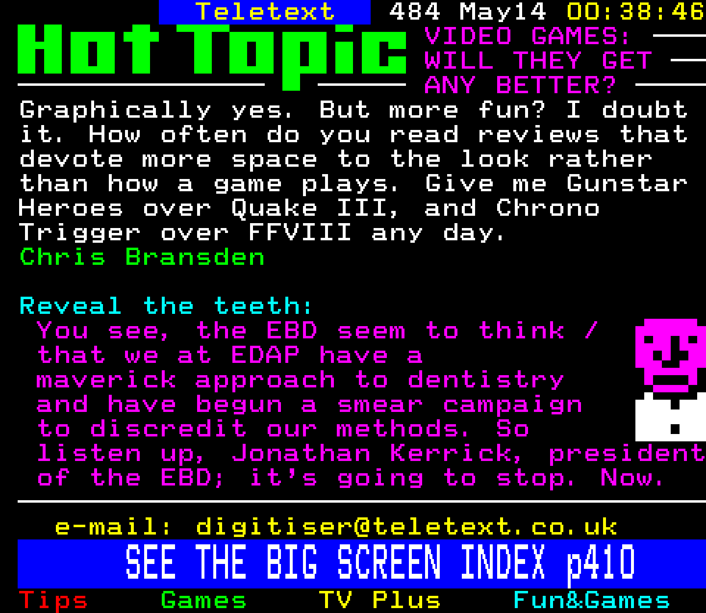 Do you have any full screenshot images of Digitiser that you'd like to see included in this archive? I'd just love to include them here - please email (superpage58@gmail.com) and the Digi community will be eternally grateful. Hey: even photos of your old TV showing the teletext page are good to be included!