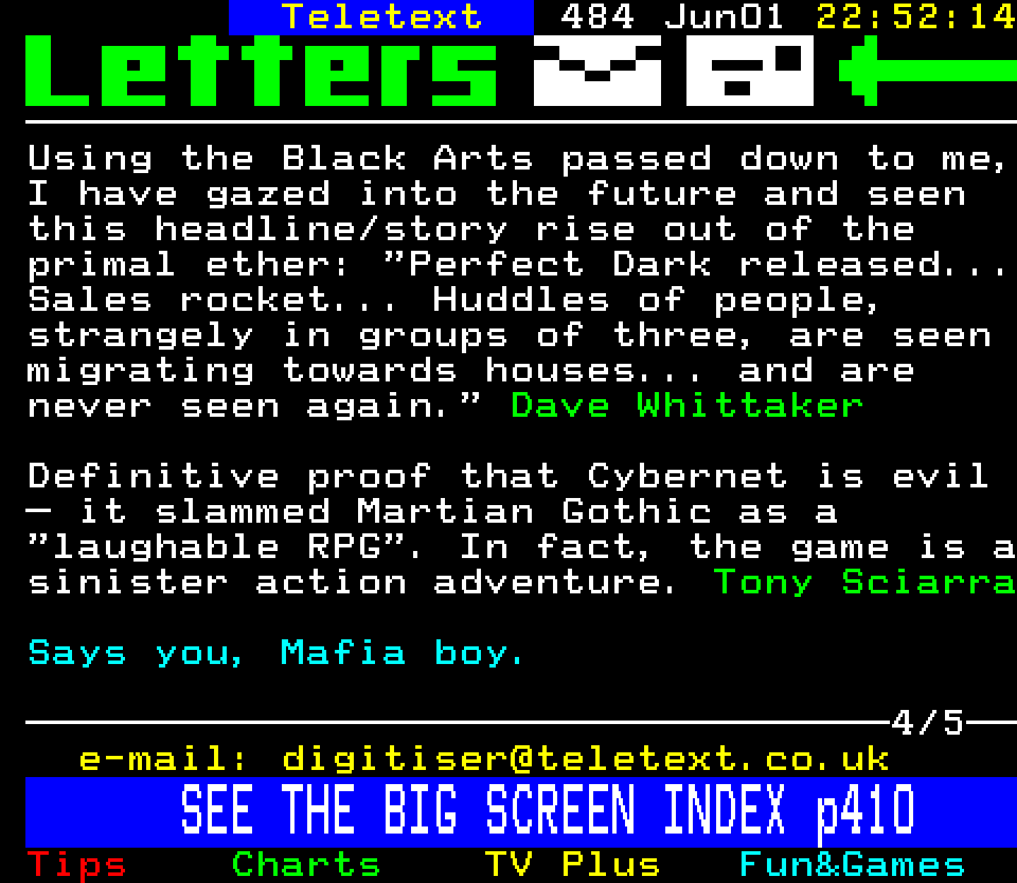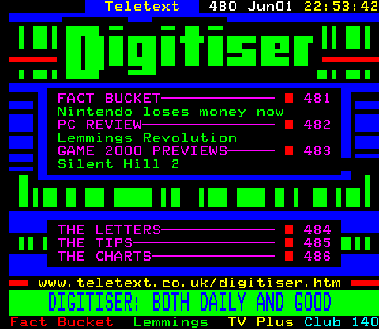 Do you have any full screenshot images of Digitiser that you'd like to see included in this archive? I'd just love to include them here - please email (superpage58@gmail.com) and the Digi community will be eternally grateful. Hey: even photos of your old TV showing the teletext page are good to be included!
